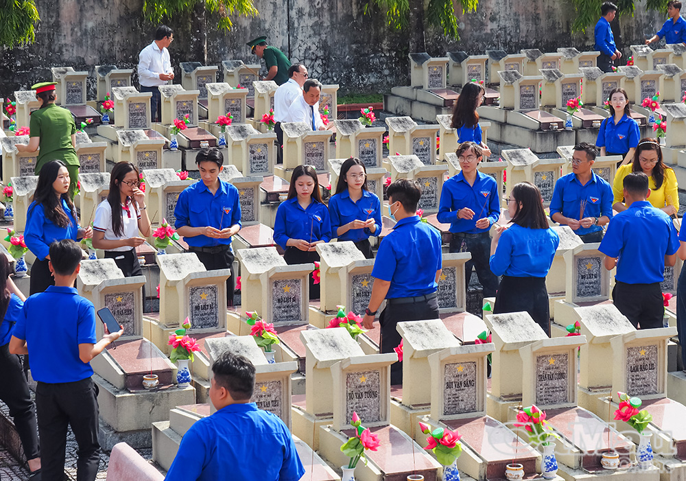 Lãnh đạo các sở, ban, ngành tỉnh cùng đông đảo đoàn viên, thanh niên tham gia dâng hương và thắp hương tại các phần mộ liệt sĩ.