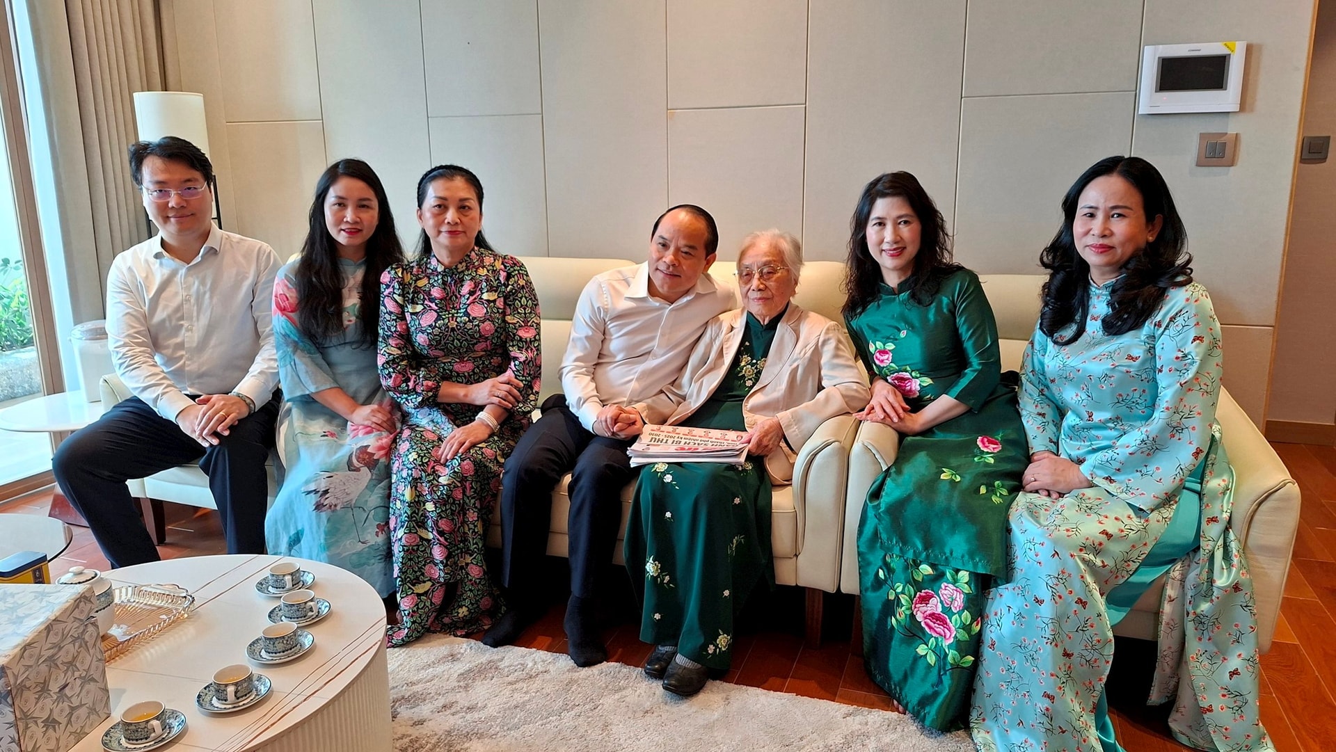 Đoàn công tác TANDTC chụp ảnh lưu niệm cùng bà Nguyễn Thị Bình, nguyên Phó Chủ tịch nước, nhân dịp kỷ niệm 95 năm Ngày thành lập Hội Liên hiệp Phụ nữ Việt Nam (20/10/1930 – 20/10/2025).
