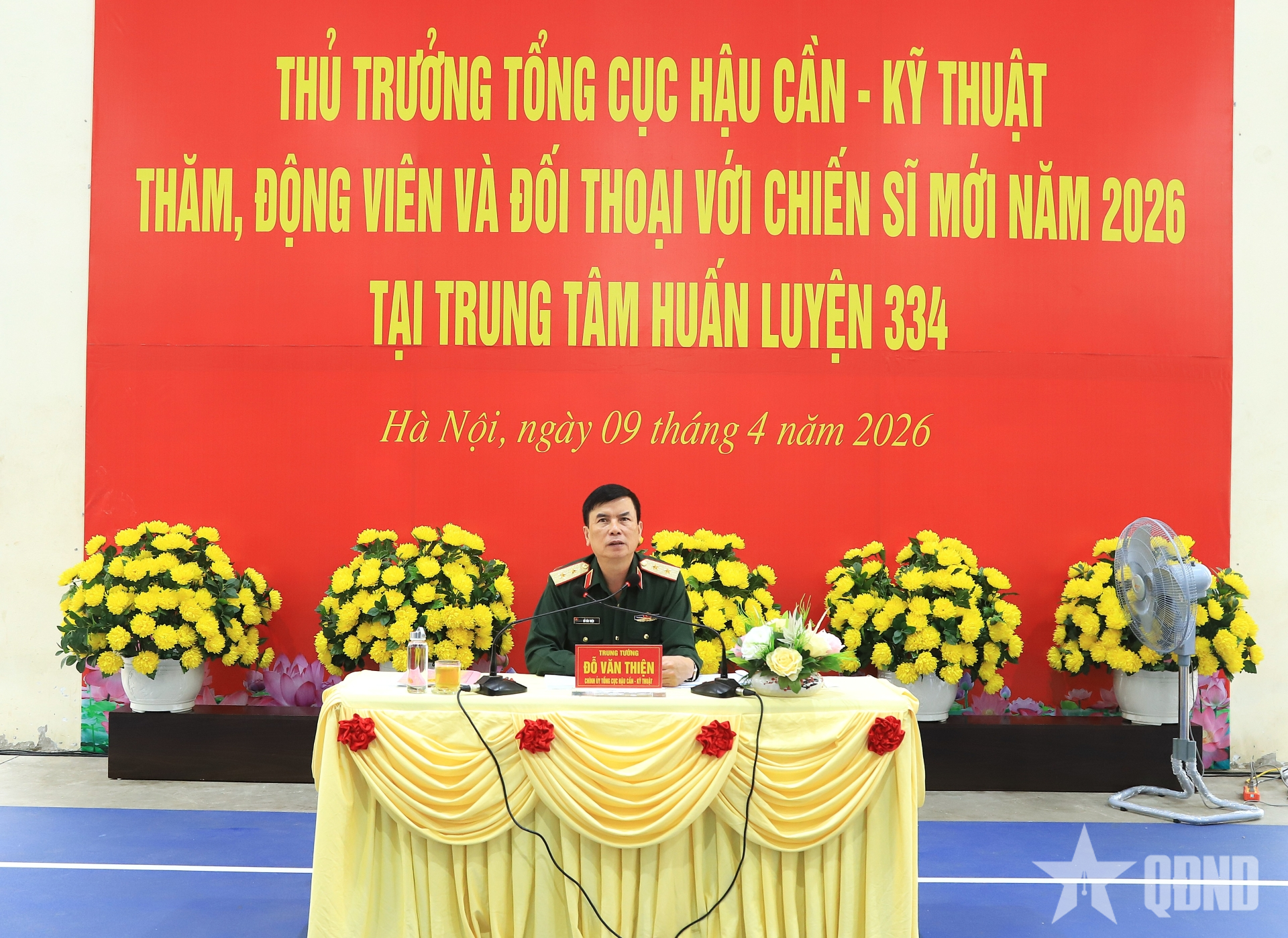 Trung tướng Đỗ Văn Thiện, Bí thư Đảng ủy, Chính ủy Tổng cục Hậu cần-Kỹ thuật chủ trì đối thoại với chiến sĩ mới.