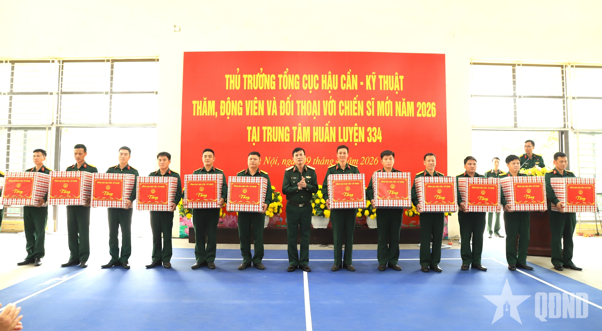 Nhân dịp này, Tổng cục Hậu cần-Kỹ thuật tặng quà động viên các chiến sĩ mới thuộc diện gia đình chính sách, gia đình có hoàn cảnh khó khăn, chiến sĩ mới đã có vợ con.