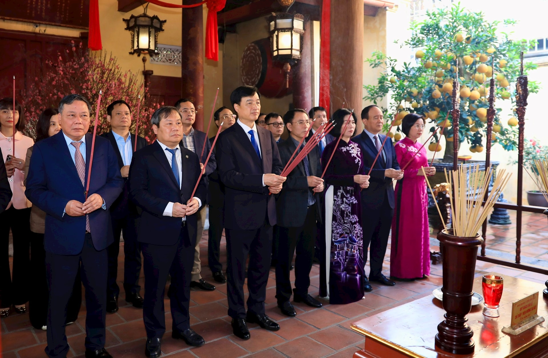 Bí thư Thành ủy Hà Nội Nguyễn Duy Ngọc và các đồng chí lãnh đạo thành phố dâng hương tại Tượng đài vua Lê Thái Tổ và đình Nam Hương. Ảnh: Thành Thái