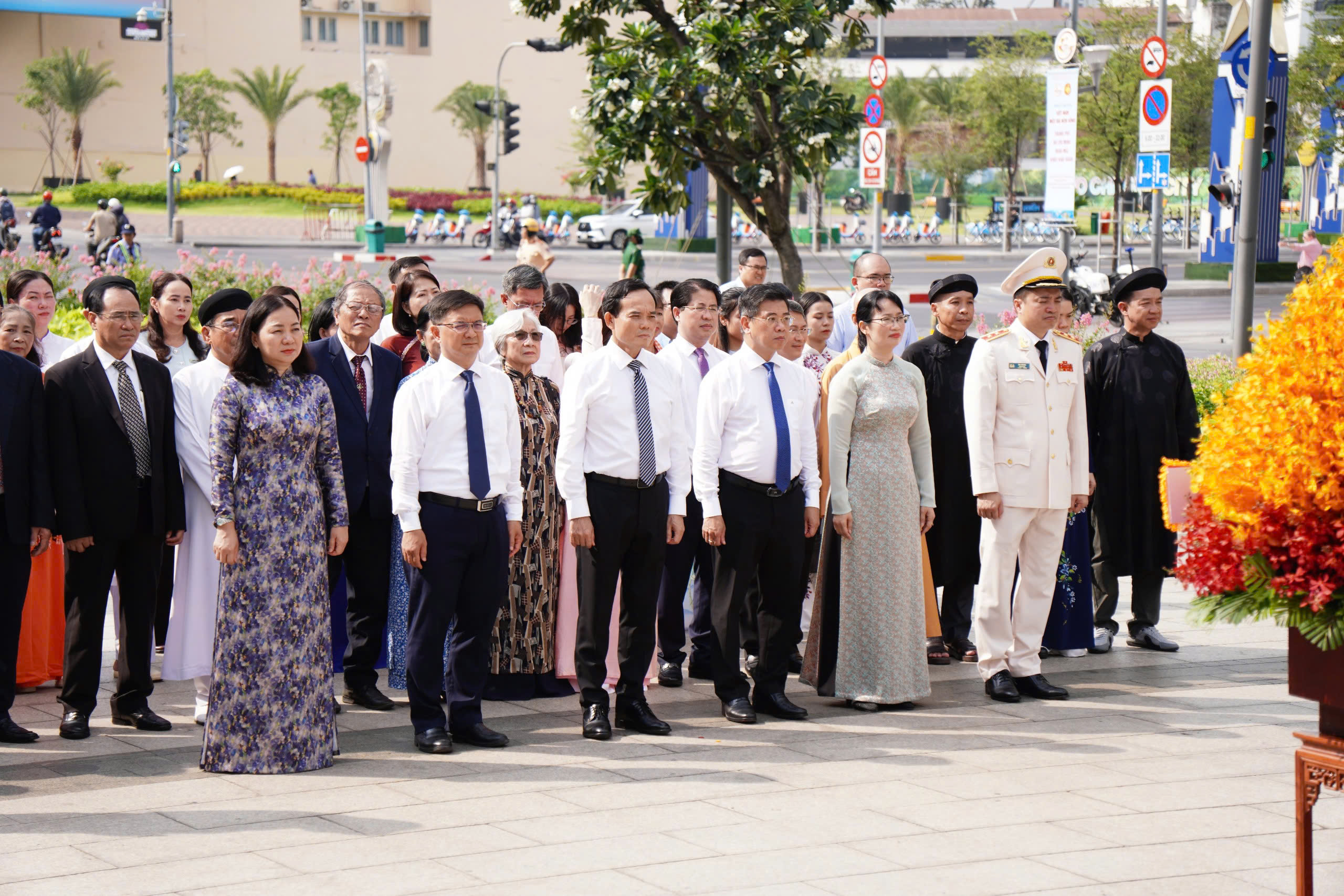 Sáng cùng ngày, đoàn đại biểu Thành ủy - HĐND - UBND - Ủy ban MTTQ Việt Nam TP.HCM do Phó Bí thư Thành ủy Văn Thị Bạch Tuyết làm Trưởng đoàn, đã đến dâng hương, dâng hoa tưởng niệm các Mẹ Việt Nam anh hùng, Anh hùng liệt sĩ tại các địa chỉ đỏ.