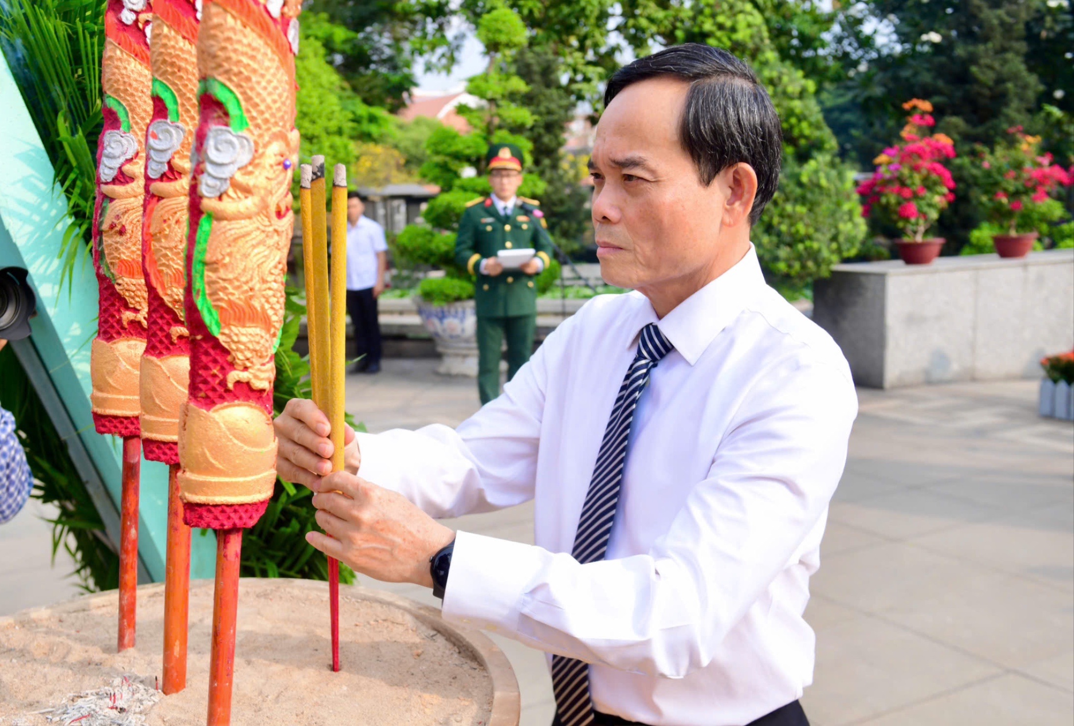 Bí thư Thành ủy TP.HCM Trần Lưu Quang dâng hương tưởng nhớ các Mẹ Việt Nam anh hùng, anh linh các Anh hùng liệt sĩ. Ảnh: THANH THÙY