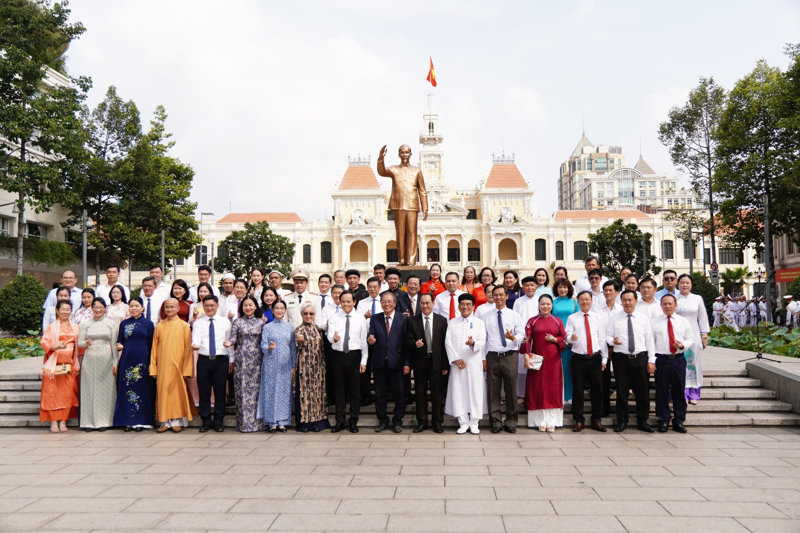 Tham gia đoàn có ông Dương Anh Đức, Ủy viên Ban Thường vụ Thành ủy, Trưởng ban Tuyên giáo và Dân vận Thành ủy TP.HCM cùng lãnh đạo các sở, ban, ngành và lực lượng vũ trang.