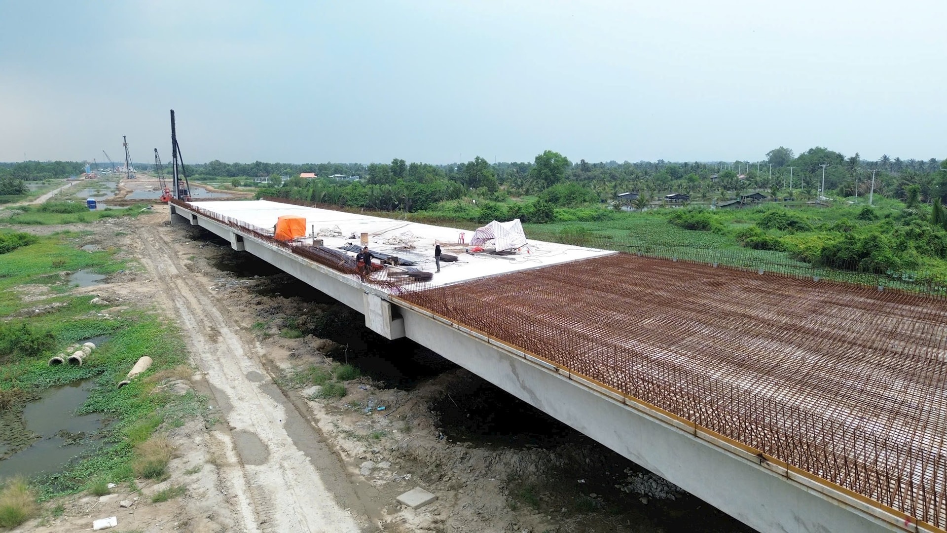 Tại khu vực cầu Kênh Thầy Thuốc, các đơn vị đang xử lý nền đất yếu bằng phương pháp bơm hút chân không, dự kiến hoàn thành vào 30/6 và thảm nhựa toàn bộ gói thầu XL10 vào 30/9.