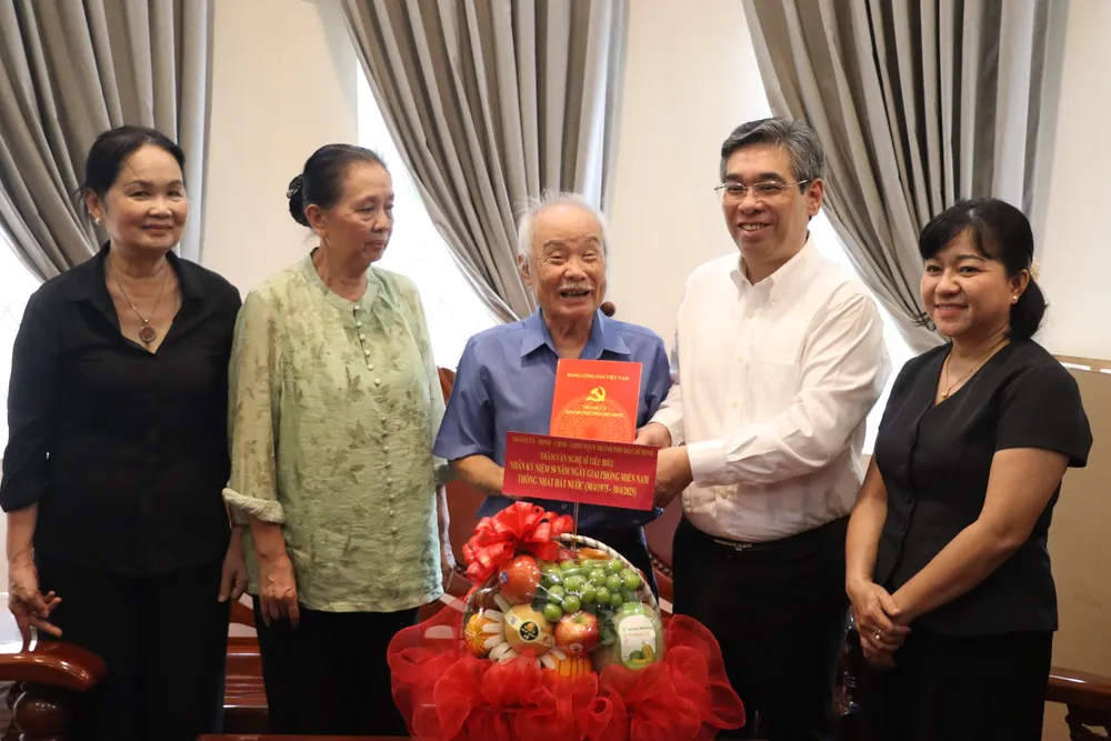 Trong chuyến thăm, ông Nguyễn Phước Lộc trân trọng trao thư mời đến các văn nghệ sĩ đến tham dự Hội nghị Tổng kết 50 năm nền văn học, nghệ thuật TP.HCM sau ngày đất nước thống nhất (30-4-1975 – 30-4-2025).