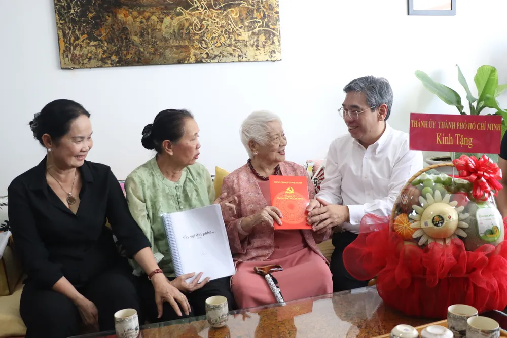 NSND Trà Giang cũng bày tỏ niềm vui và lòng biết ơn sâu sắc khi được lãnh đạo TP.HCM đến thăm và tri ân.