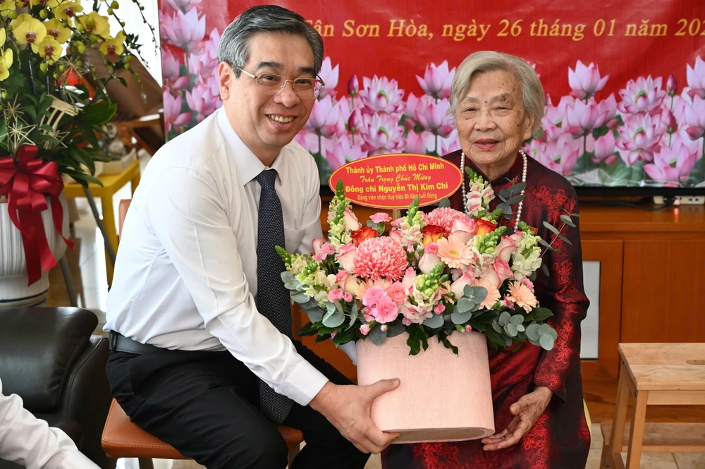 Phó Bí thư Thành ủy TP.HCM chúc bà Chi luôn dồi dào sức khỏe, sống vui, sống khỏe, tiếp tục là điểm tựa tinh thần vững chắc cho con cháu; đồng thời mong muốn các thế hệ trong gia đình tiếp nối truyền thống cách mạng, đóng góp cho sự phát triển của TP.HCM trên nhiều lĩnh vực.