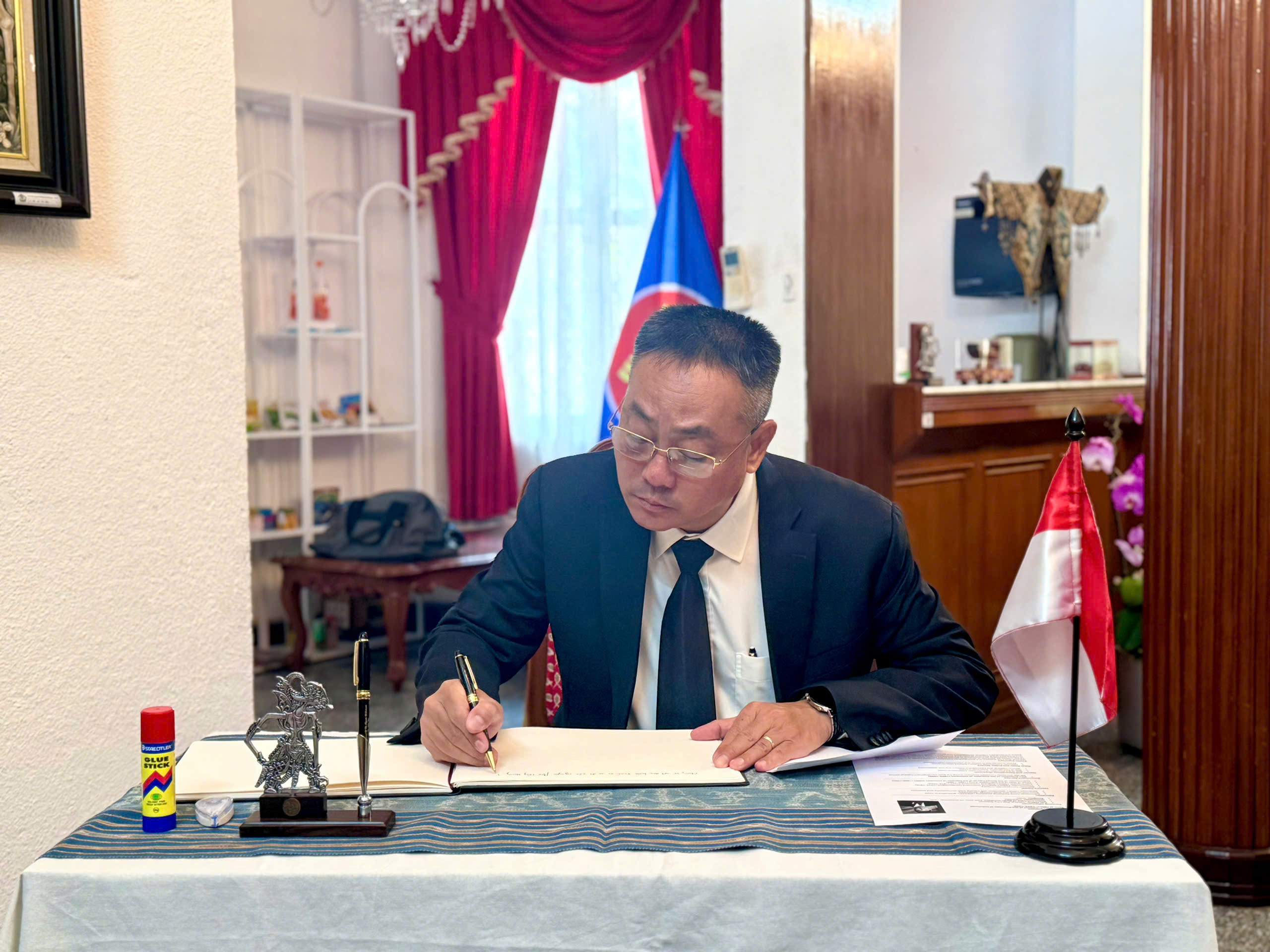 Ông Phạm Dứt Điểm, Giám đốc Sở Ngoại vụ TP.HCM đã đến viếng và ghi sổ tang Đại tướng Try Sutrisno, nguyên Phó Tổng thống thứ 6 của Cộng hòa Indonesia. Ảnh: HẢI NHI