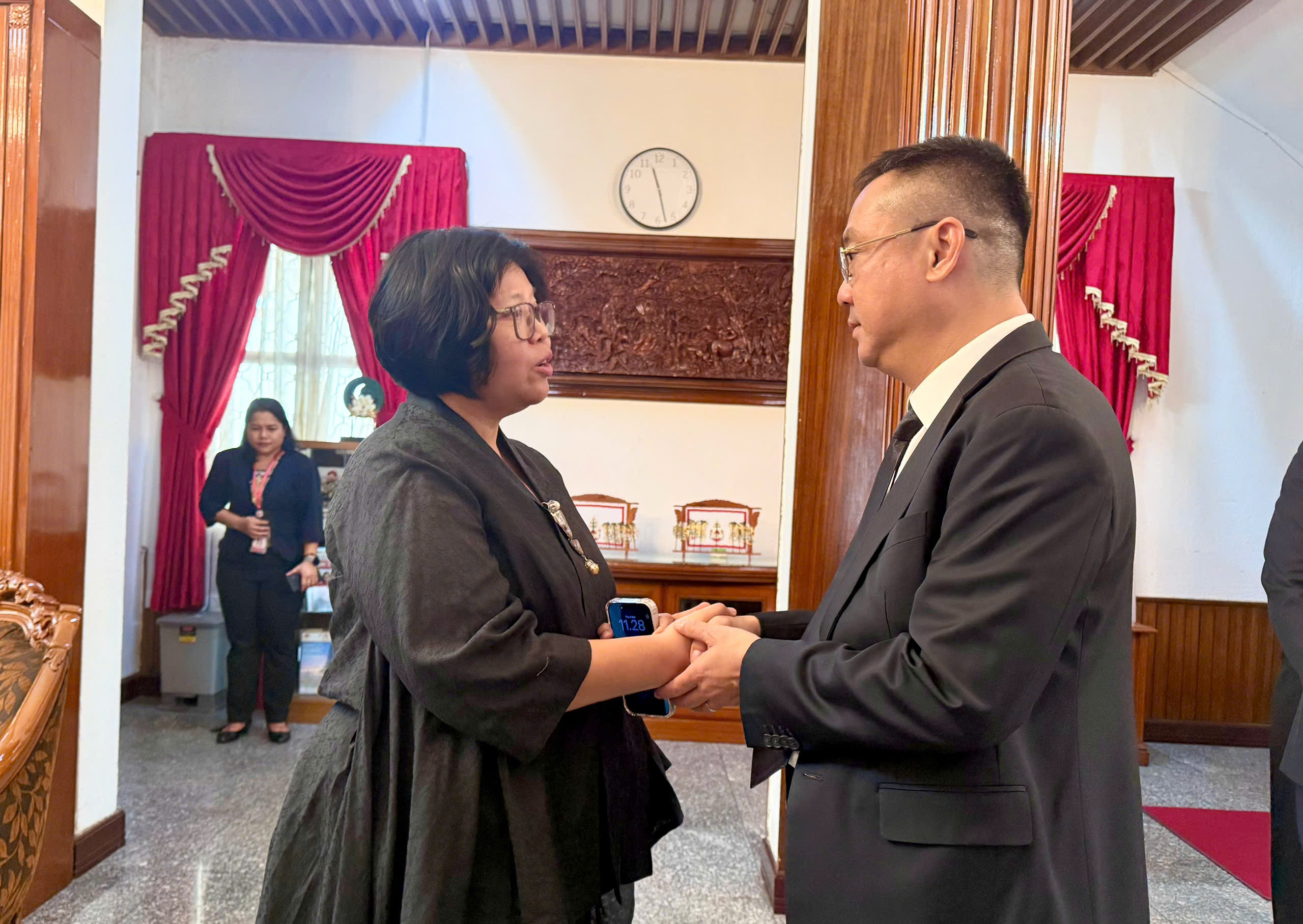 Ông Phạm Dứt Điểm, Giám đốc Sở Ngoại vụ viếng Đại tướng Try Sutrisno, nguyên Phó Tổng thống thứ 6 của Cộng hòa Indonesia (nhiệm kỳ 1993-1998). Ảnh: HẢI NHI