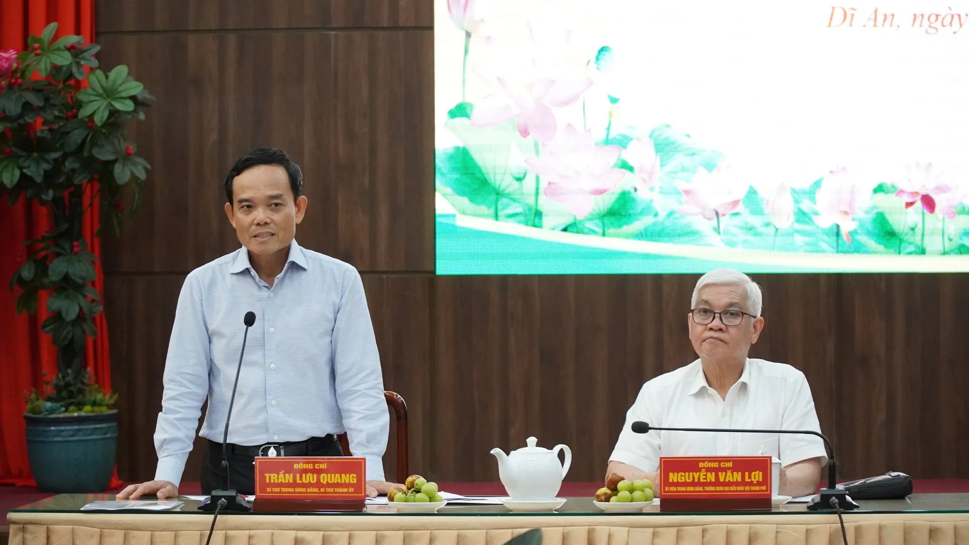 Bí thư Thành ủy Trần Lưu Quang phát biểu chỉ đạo, chia sẻ với những áp lực của phường Dĩ An sau sáp nhập đồng thời cũng biểu dương những nỗ lực của phường trong khắc phục khó khăn, đưa tổ chức bộ máy của phường hoạt động ổn định khi vận hành chính quyền địa phương 2 cấp. Bí thư Thành ủy cũng yêu cầu phường Dĩ An phát huy lợi thế, chủ động thích ứng với thực tế đặc thù của địa bàn, tăng cường công tác phối hợp với các sở, ngành, các địa phương trong quá trình triển khai thực hiện nhiệm vụ chính trị địa phương.