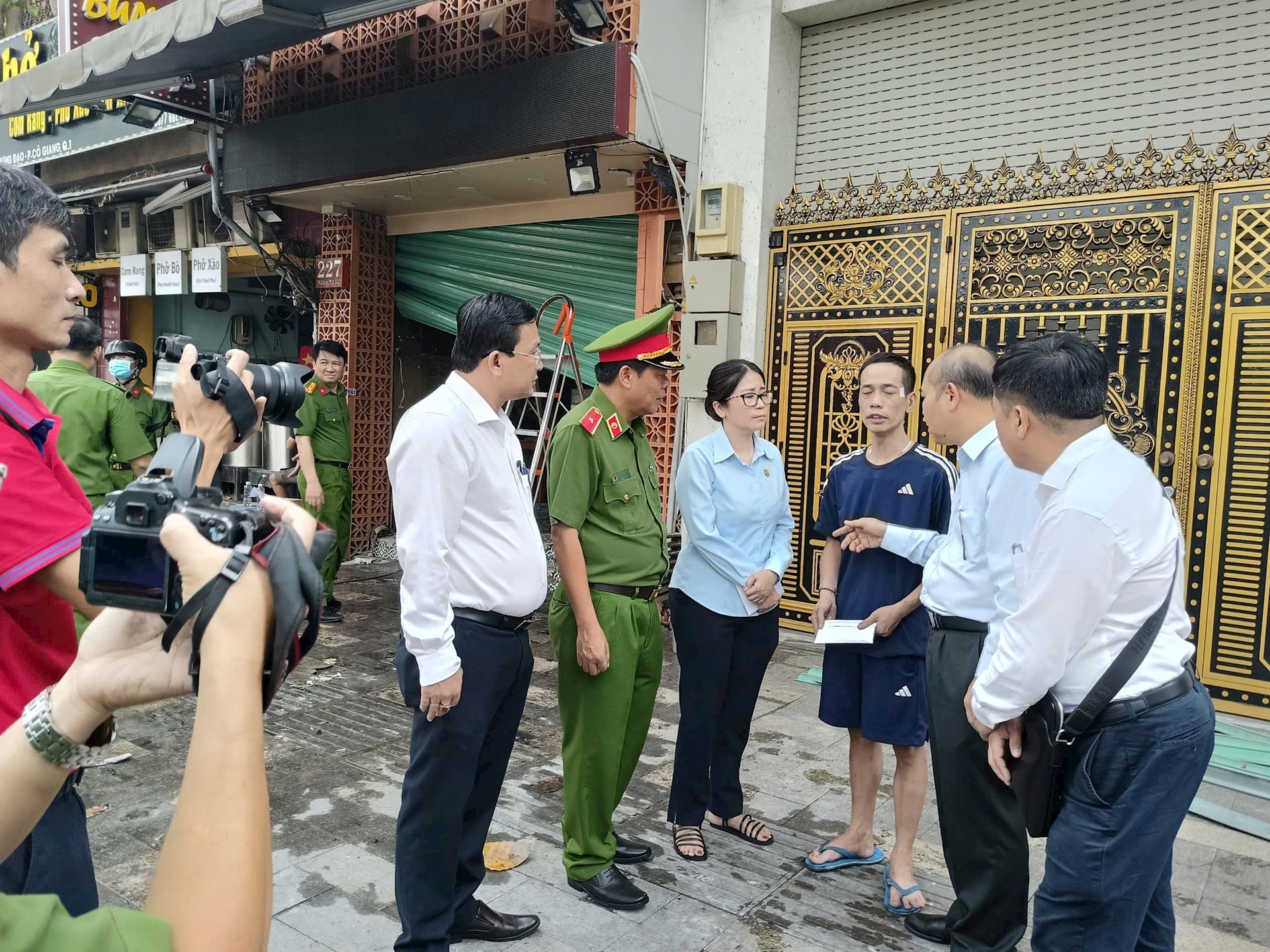 Hiện các đơn vị nghiệp vụ Công an thành phố vẫn đang phối hợp Công an phường Cầu Ông Lãnh phong tỏa, khám nghiệm hiện trường vụ cháy.