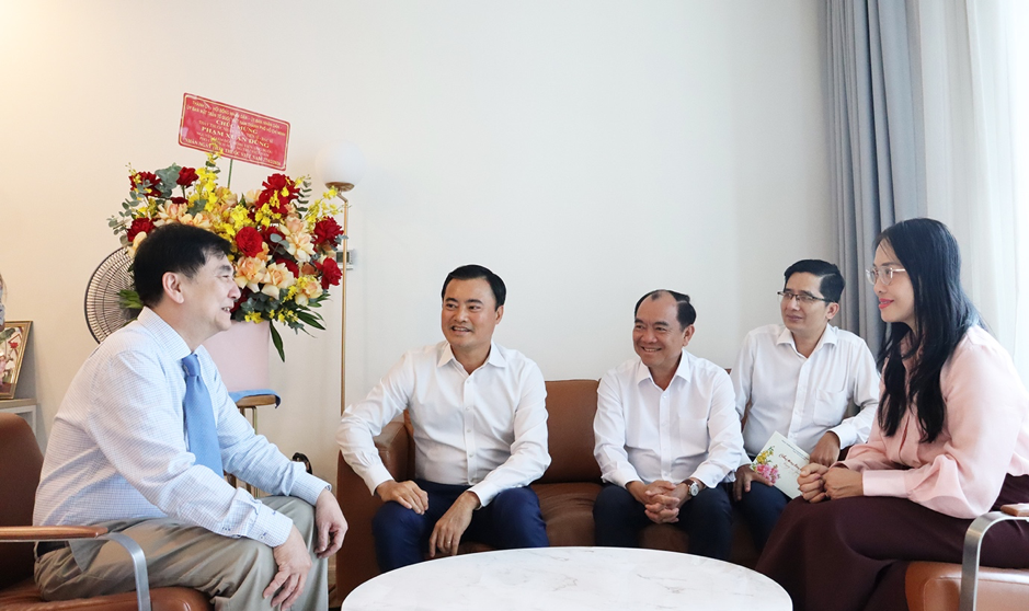 Đoàn cũng đến thăm GS.TS.BS Ngô Minh Xuân – Thầy thuốc Nhân dân, nguyên Hiệu trưởng Trường Đại học Y khoa Phạm Ngọc Thạch. Với hơn 30 năm gắn bó với sự nghiệp đào tạo và nghiên cứu y học, ông là nhà quản lý tâm huyết, giảng viên mẫu mực và nhà khoa học có nhiều công trình nghiên cứu giá trị, đóng góp thiết thực cho sự phát triển của giáo dục y khoa Việt Nam. Ông đã có khoảng 120 công trình nghiên cứu được ứng dụng trong thực tiễn khám và điều trị bệnh ở trẻ em, được trao tặng nhiều phần thưởng cao quý như Huân chương Lao động hạng Nhì, hạng Ba và danh hiệu Chiến sĩ thi đua toàn quốc.