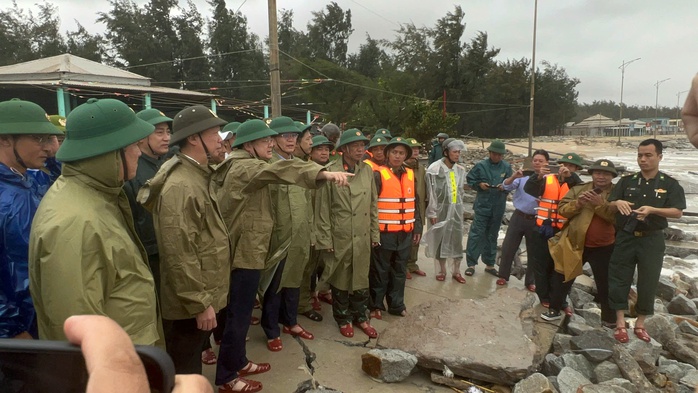Bí thư Thành ủy và Chủ tịch UBND TP Huế kiểm tra công tác phòng chống bão Fengshen tại khu vực biển Thuận An.
