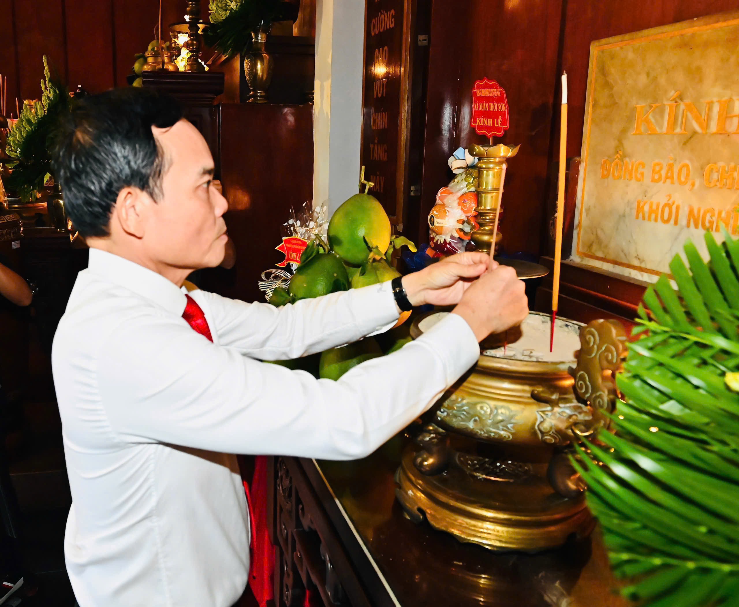 Đoàn đại biểu dâng hương, dâng hoa tại Di tích lịch sử - văn hóa cấp quốc gia Dinh Quận Hóc Môn. Ảnh: VIỆT DŨNG
