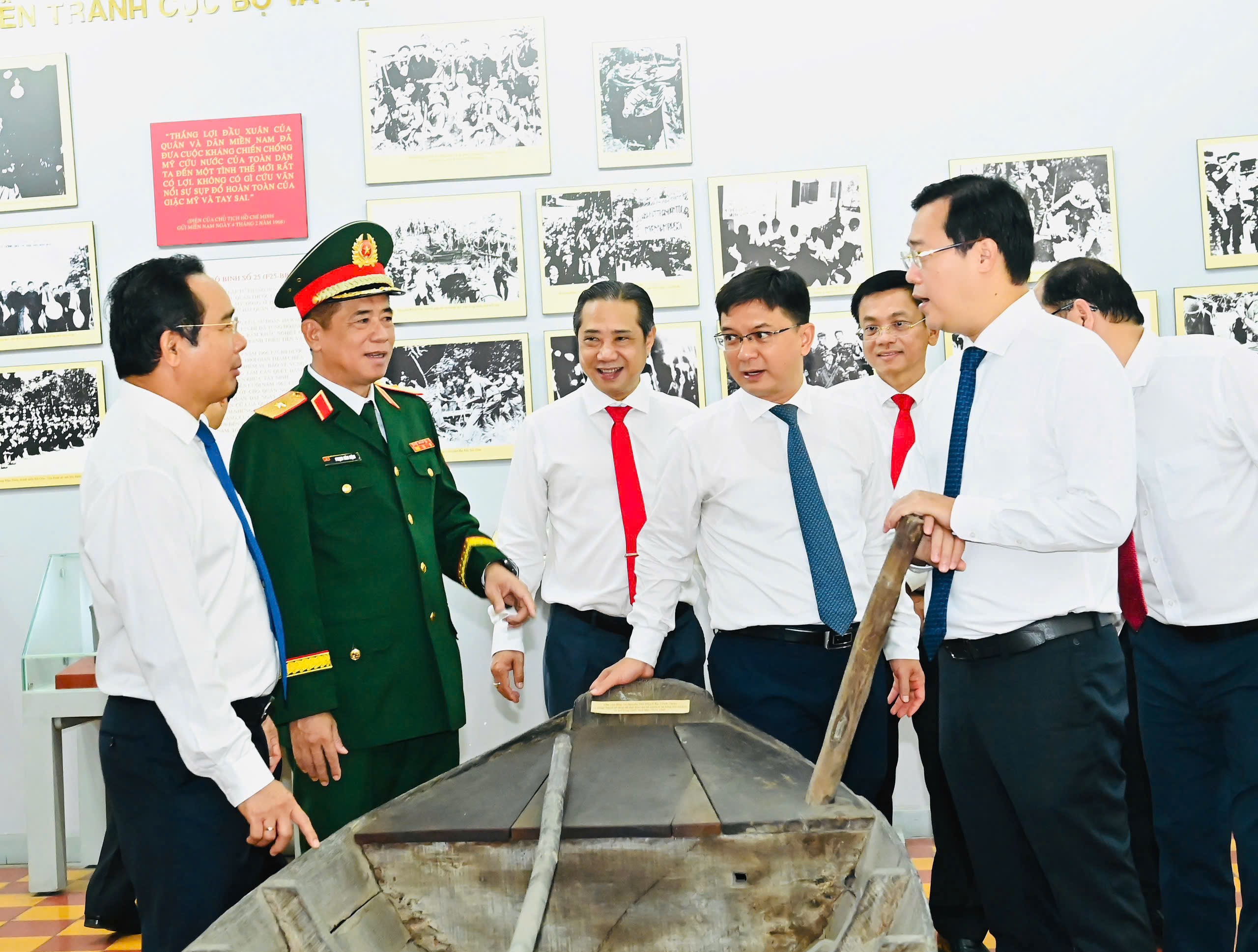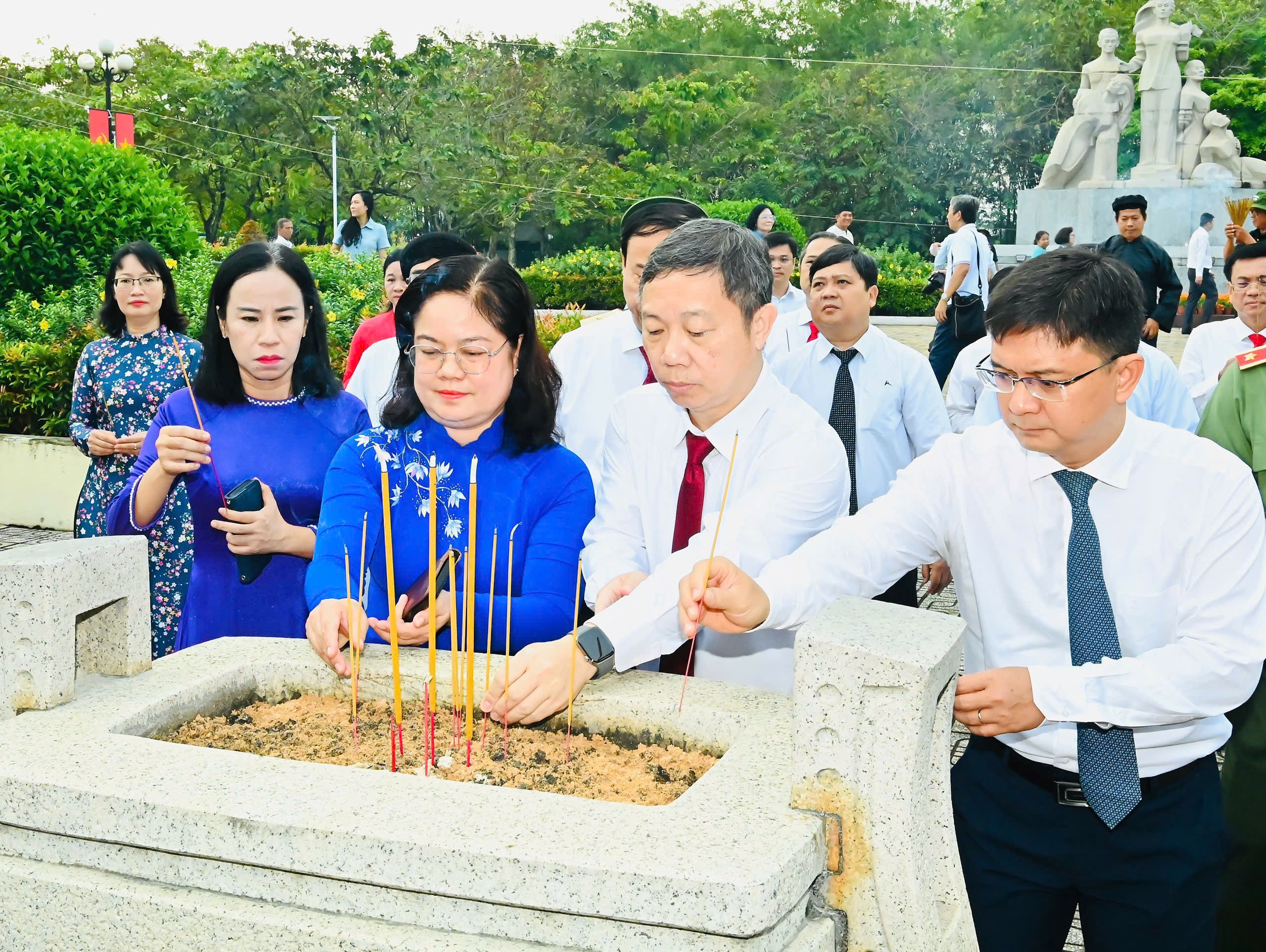 Cùng ngày, đoàn đại biểu TPHCM tiếp tục đến dâng hoa, dâng hương tại Tượng đài Nam Kỳ Khởi nghĩa và Di tích Lịch sử văn hóa quốc gia Địa điểm Dinh Quận Hóc Môn.