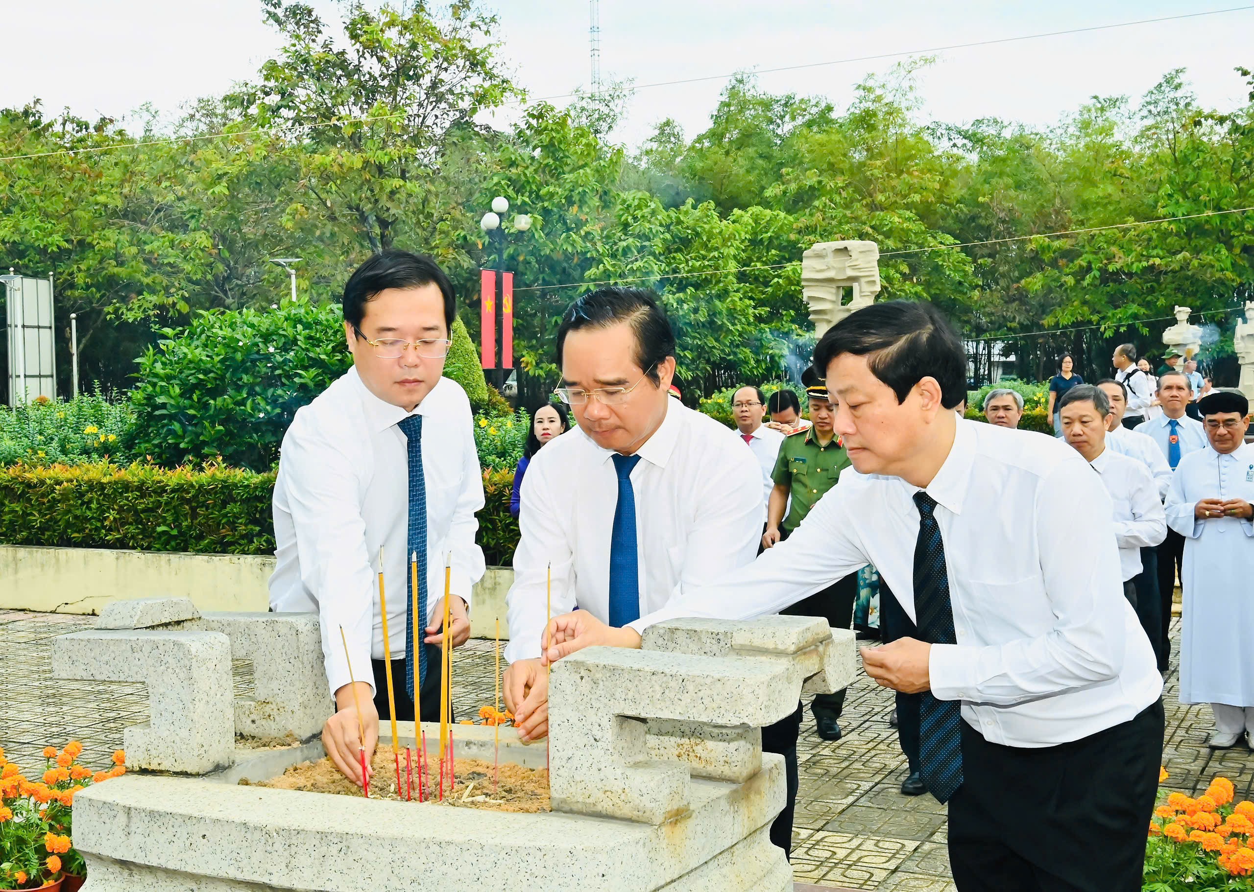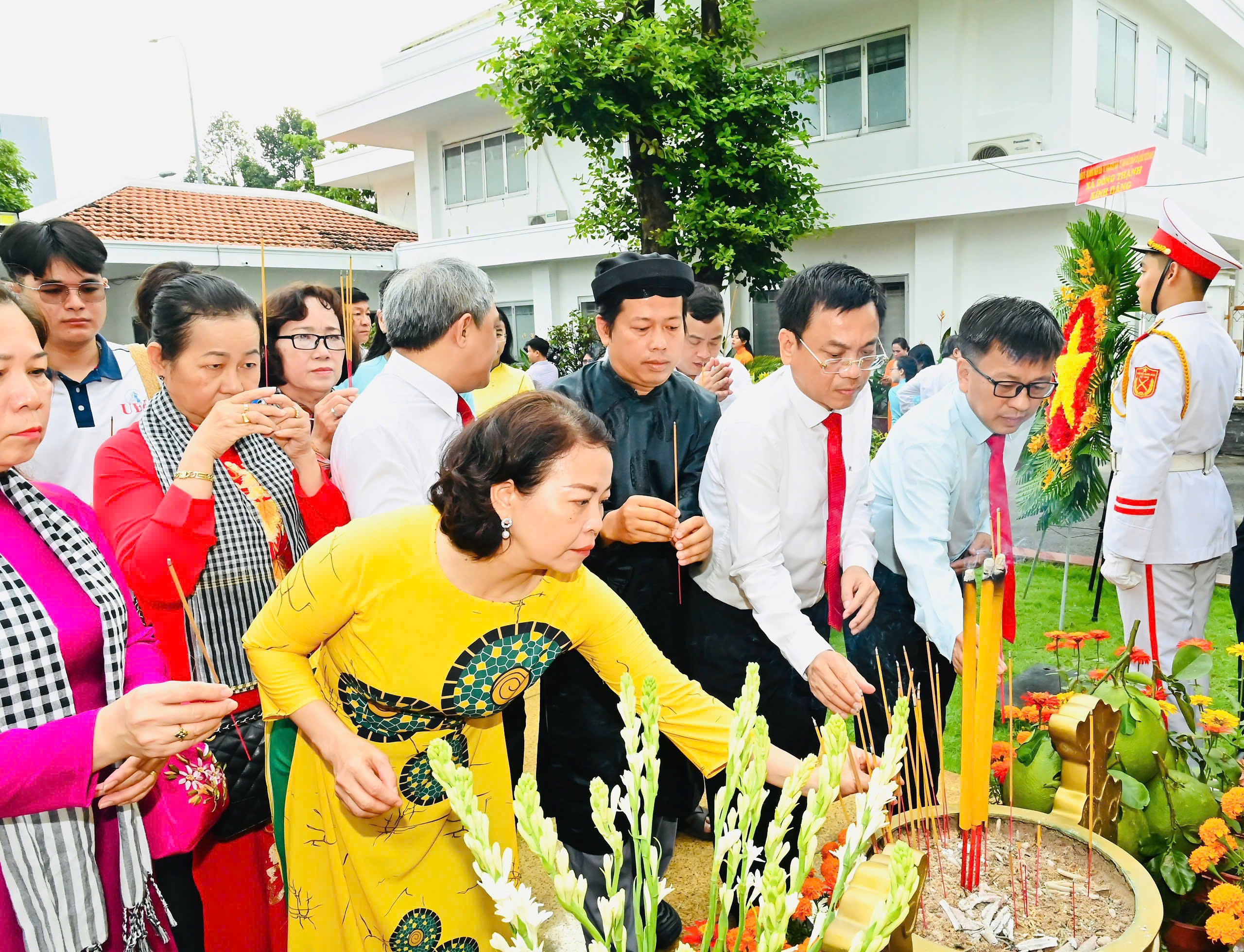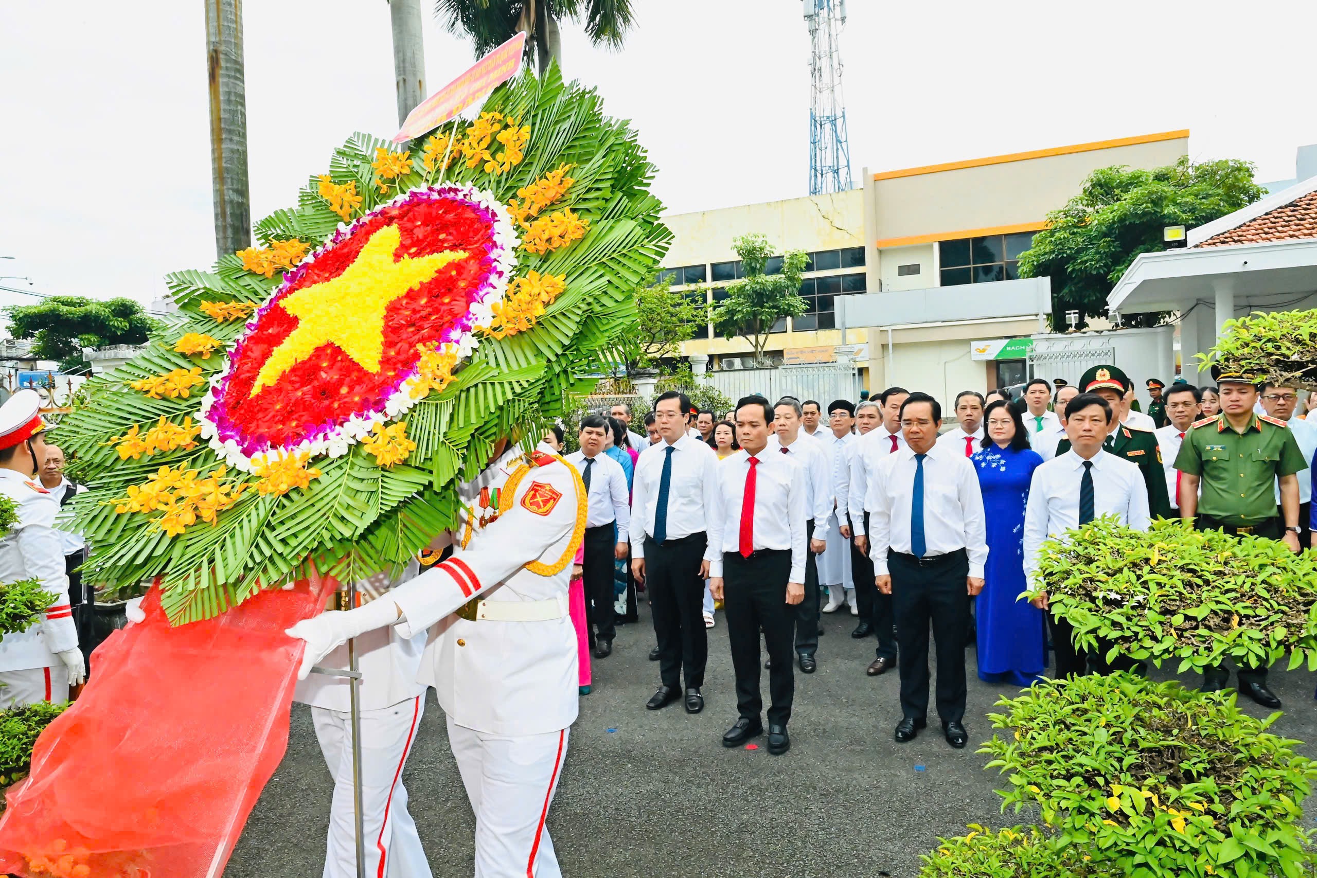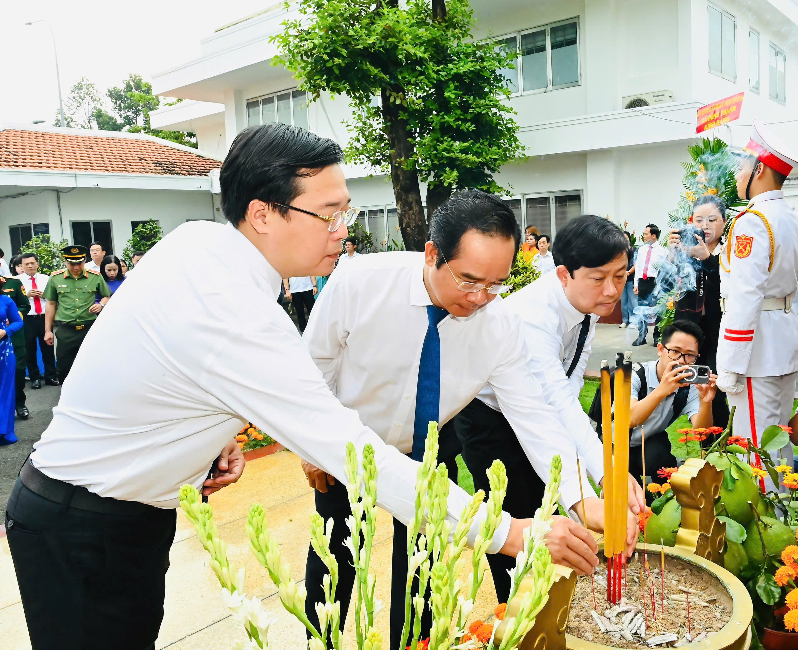 Tại buổi lễ, Bí thư Thành ủy TPHCM Trần Lưu Quang cùng các đại biểu đã thành kính dâng hoa, dâng hương và dành phút mặc niệm tưởng nhớ, bày tỏ lòng tri ân sâu sắc đến công lao to lớn của Chủ tịch Hồ Chí Minh, các đồng chí nguyên lãnh đạo Đảng, Nhà nước và đồng bào, chiến sĩ đã hy sinh vì sự nghiệp đấu tranh giải phóng dân tộc, thống nhất đất nước.