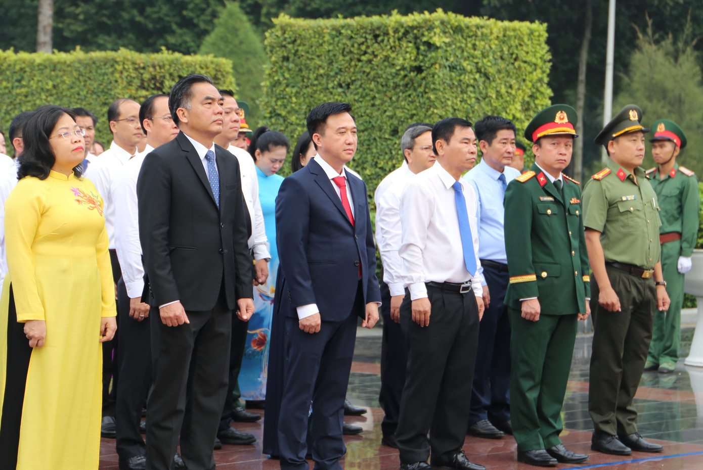 Trong không khí trang nghiêm, đoàn đại biểu thành kính dâng hương, dâng hoa, dành phút mặc niệm bày tỏ lòng thành kính và biết ơn sâu sắc đối với các Anh hùng liệt sĩ đã anh dũng hy sinh vì sự nghiệp đấu tranh giải phóng dân tộc và thống nhất đất nước.