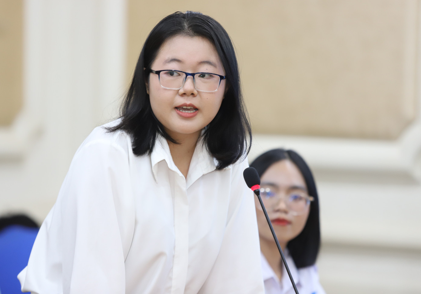 “Hiện chúng em đang dần làm chủ tri thức, khoa học công nghệ và tiếp cận với những công nghệ tiên tiến. Chúng em mong thành phố sẽ mở rộng điều kiện hỗ trợ đối với các hoạt động NCKH cũng như những đề tài do phụ nữ làm chủ nhiệm. Bên cạnh đó, có thêm sự hỗ trợ đối với những đề tài ứng dụng AI để bảo tồn và phát triển văn hóa dân tộc”, nữ sinh Minh Anh gửi gắm với lãnh đạo TPHCM.