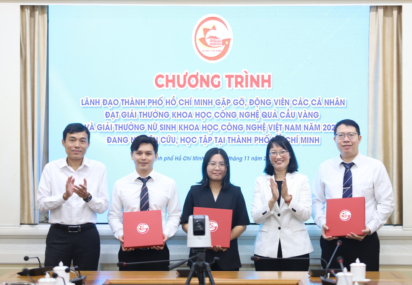 Lãnh đạo UBND TPHCM, Sở KH&CN tặng quà động viên các nhà khoa học trẻ đạt giải thưởng Quả Cầu Vàng.