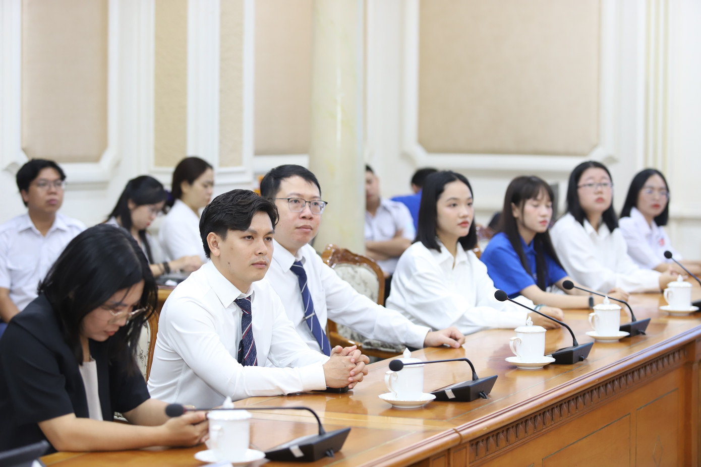Phó Chủ tịch UBND TPHCM Trần Thị Diệu Thúy trao đổi tại buổi gặp mặt.