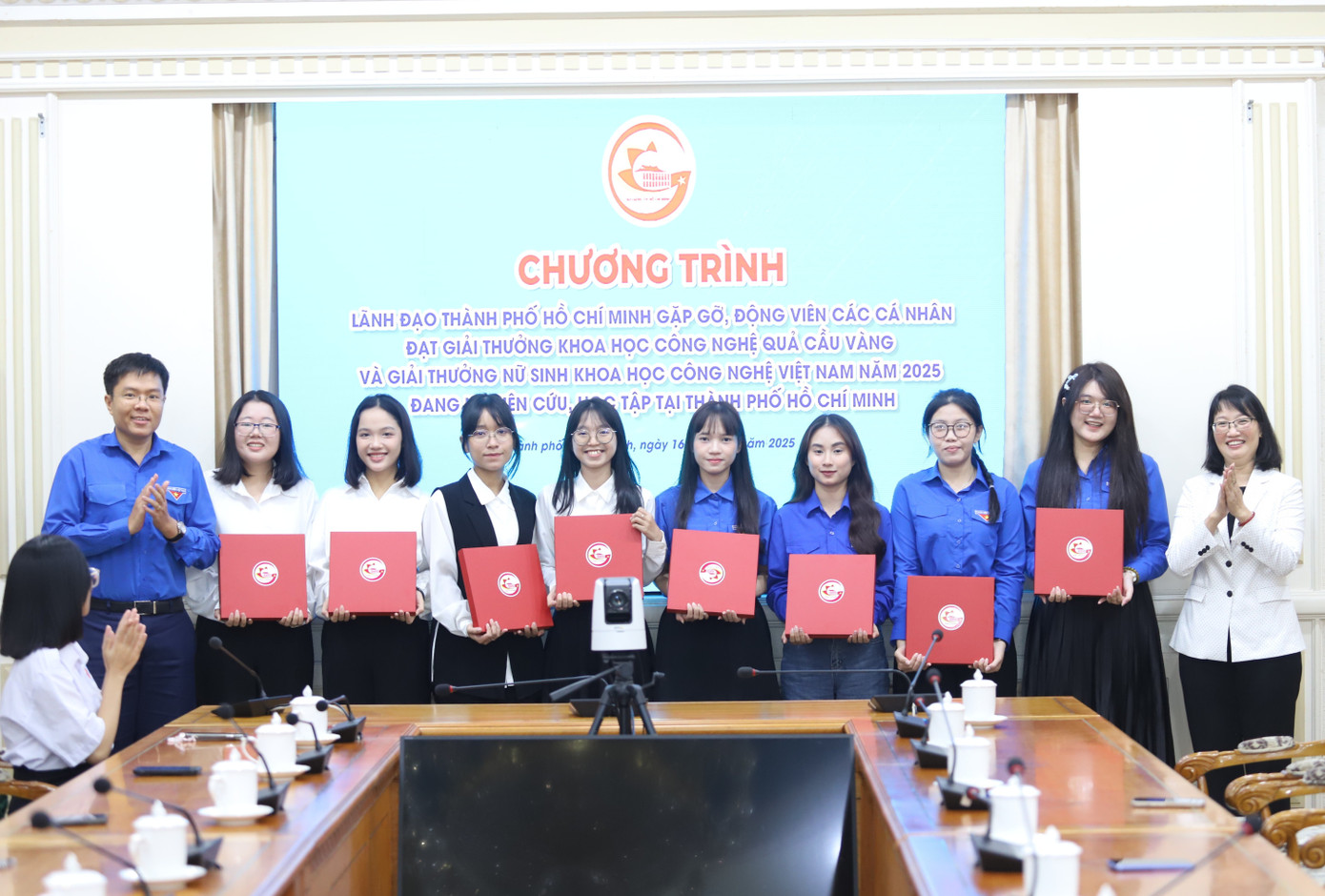 Lãnh đạo UBND TPHCM, Thành Đoàn khen thưởng các cá nhân đạt Giải thưởng Nữ sinh KHCN Việt Nam năm 2025.