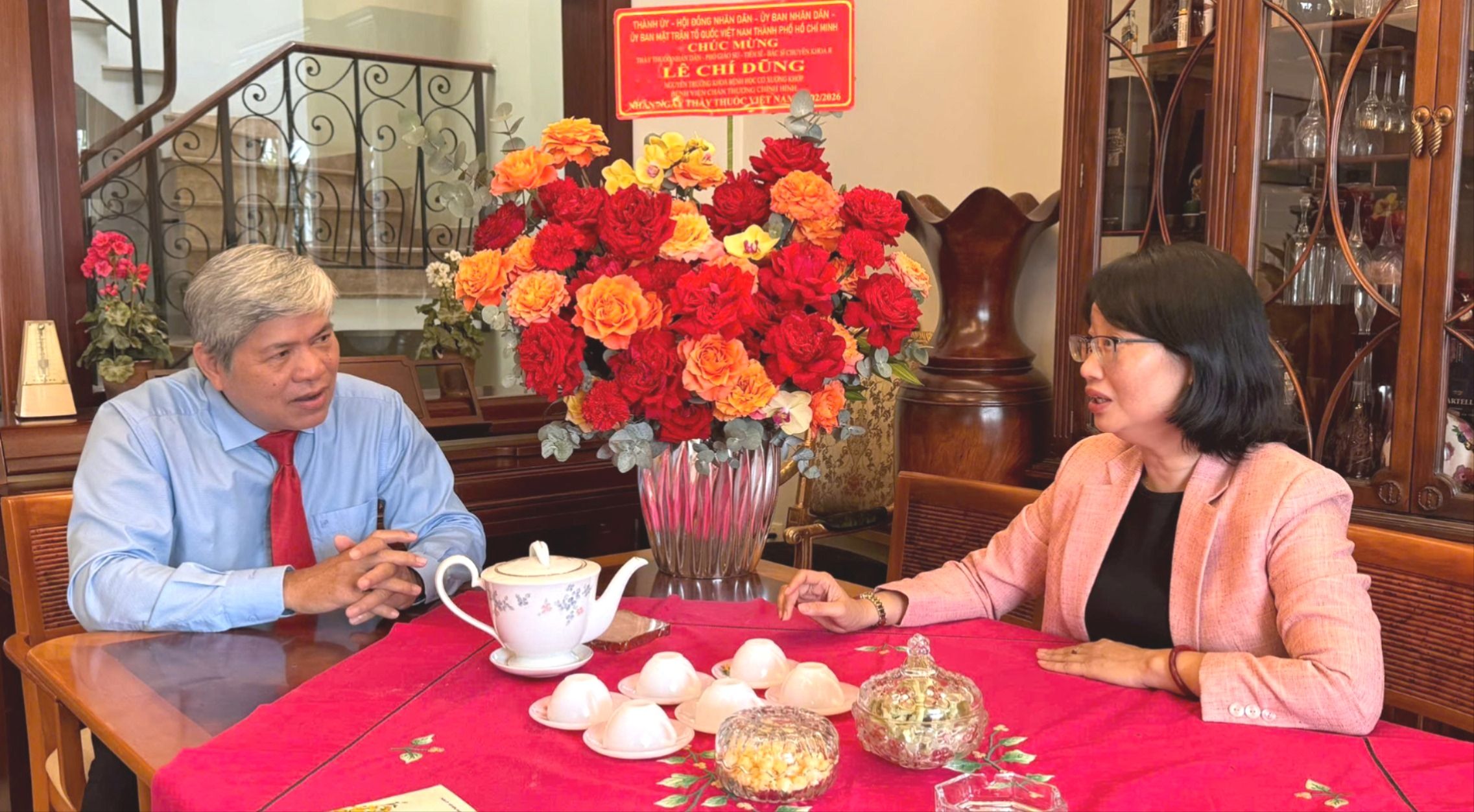 Phó Chủ tịch UBND TPHCM Trần Thị Diệu Thúy thăm, chúc mừng PGS-TS-BS Lê Chí Dũng, nguyên Trưởng khoa Bệnh học Cơ xương khớp, Bệnh viện Chấn thương Chỉnh hình TPHCM