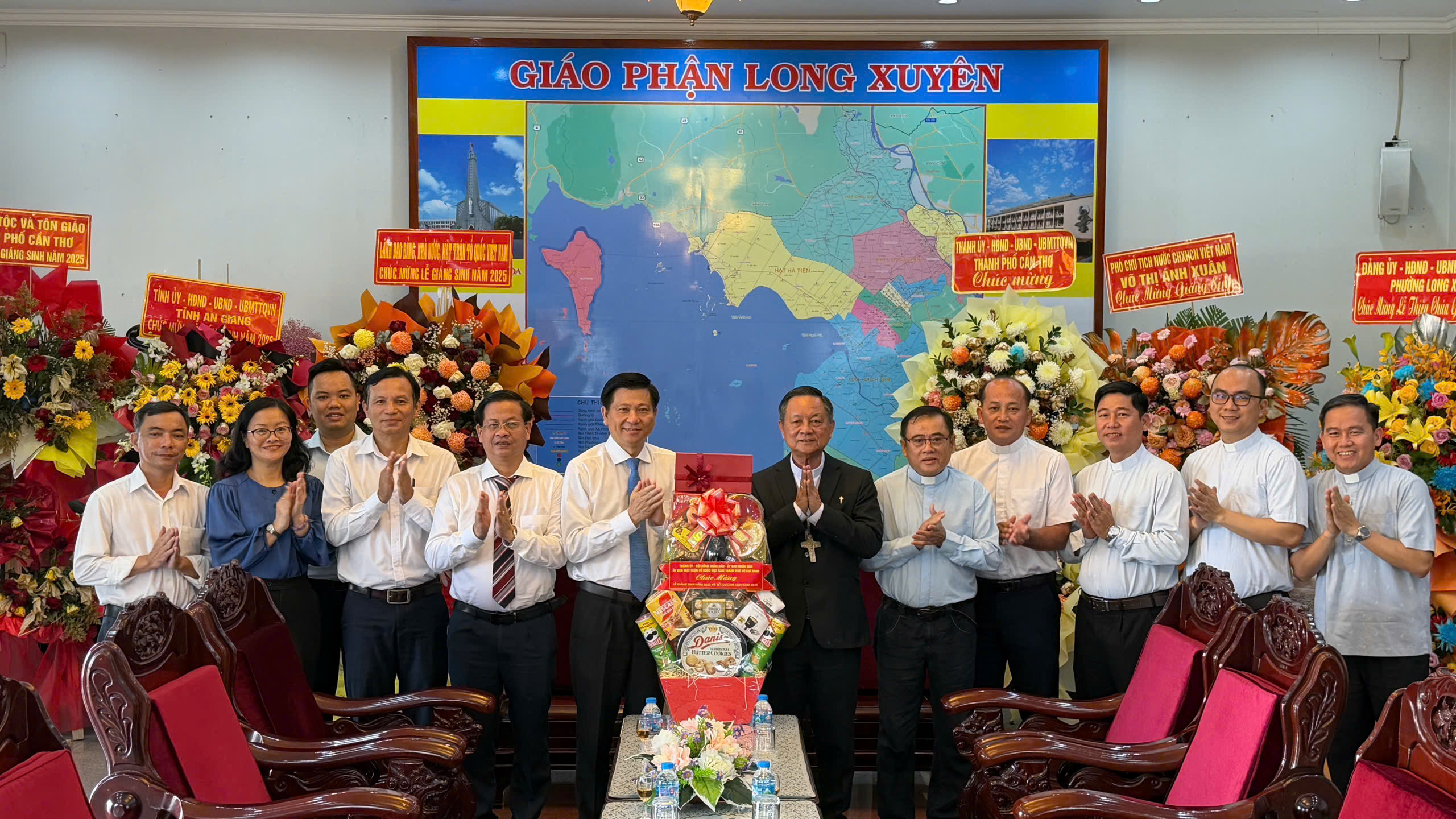 Trong không khí ấm áp những ngày cuối năm, đồng chí Trần Văn Tuấn gửi lời chúc Giáng sinh an lành, hạnh phúc đến các vị giám mục, linh mục và toàn thể giáo dân Giáo phận Long Xuyên. Đồng chí cũng thông tin khái quát những kết quả nổi bật về tình hình kinh tế – xã hội của TPHCM trong năm qua, cùng các dự án, chương trình trọng điểm mà thành phố đang quyết tâm thực hiện.
