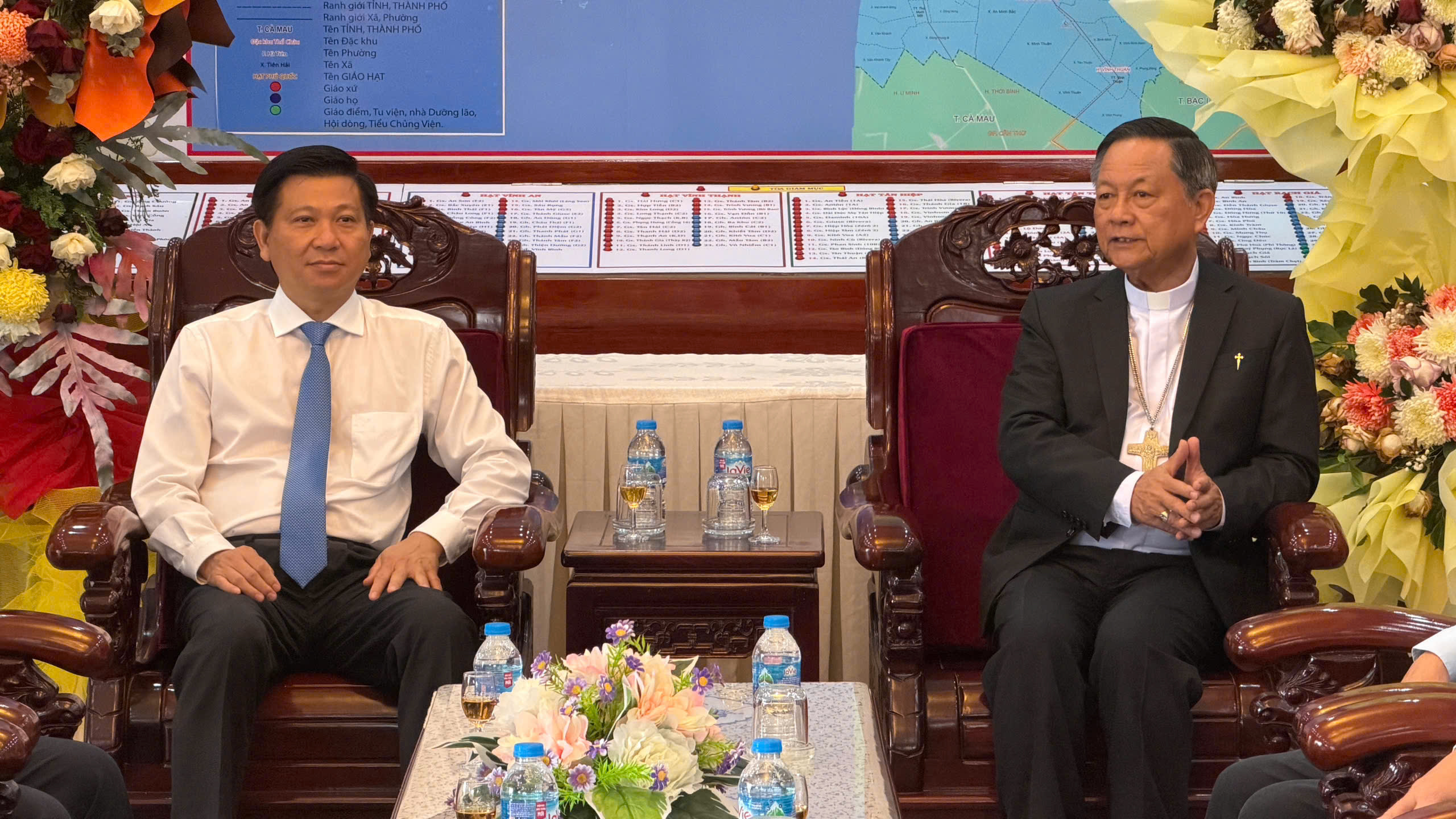 Phó Chủ tịch HĐND TPHCM Trần Văn Tuấn trò chuyện cùng Giám mục Giuse Trần Văn Toản