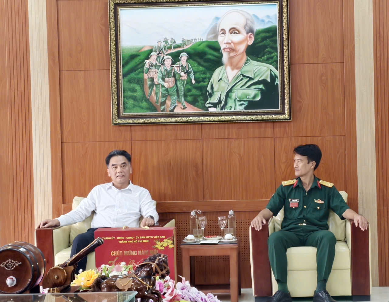 Chiều cùng ngày, đoàn công tác UBND TPHCM do đồng chí Nguyễn Lộc Hà, Ủy viên Ban Thường vụ Thành ủy, Phó Chủ tịch Thường trực UBND TPHCM làm trưởng đoàn, đến thăm, chúc tết các đơn vị lực lượng vũ trang, cơ sở y tế và gia đình chính sách trên địa bàn các phường Phú Lợi, Bình Dương, Chánh Hiệp.