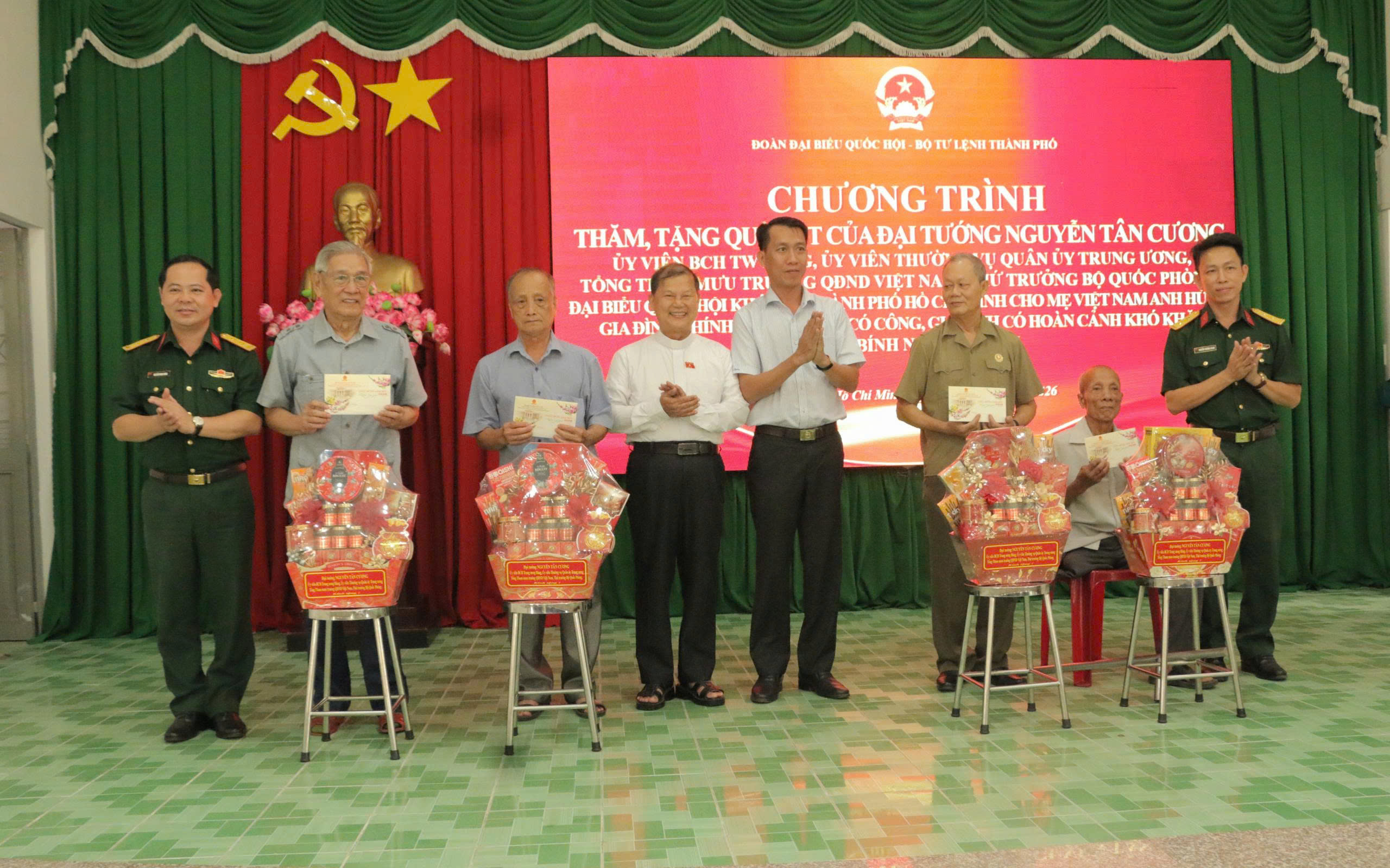 Cùng ngày, Đoàn đại biểu Quốc hội TPHCM trao 8 phần quà đến gia đình chính sách, người có công, gia đình có hoàn cảnh khó khăn trên địa bàn xã Bàu Bàng. Mỗi phần quà trị giá 500.000 đồng và 2.000.000 đồng tiền mặt.