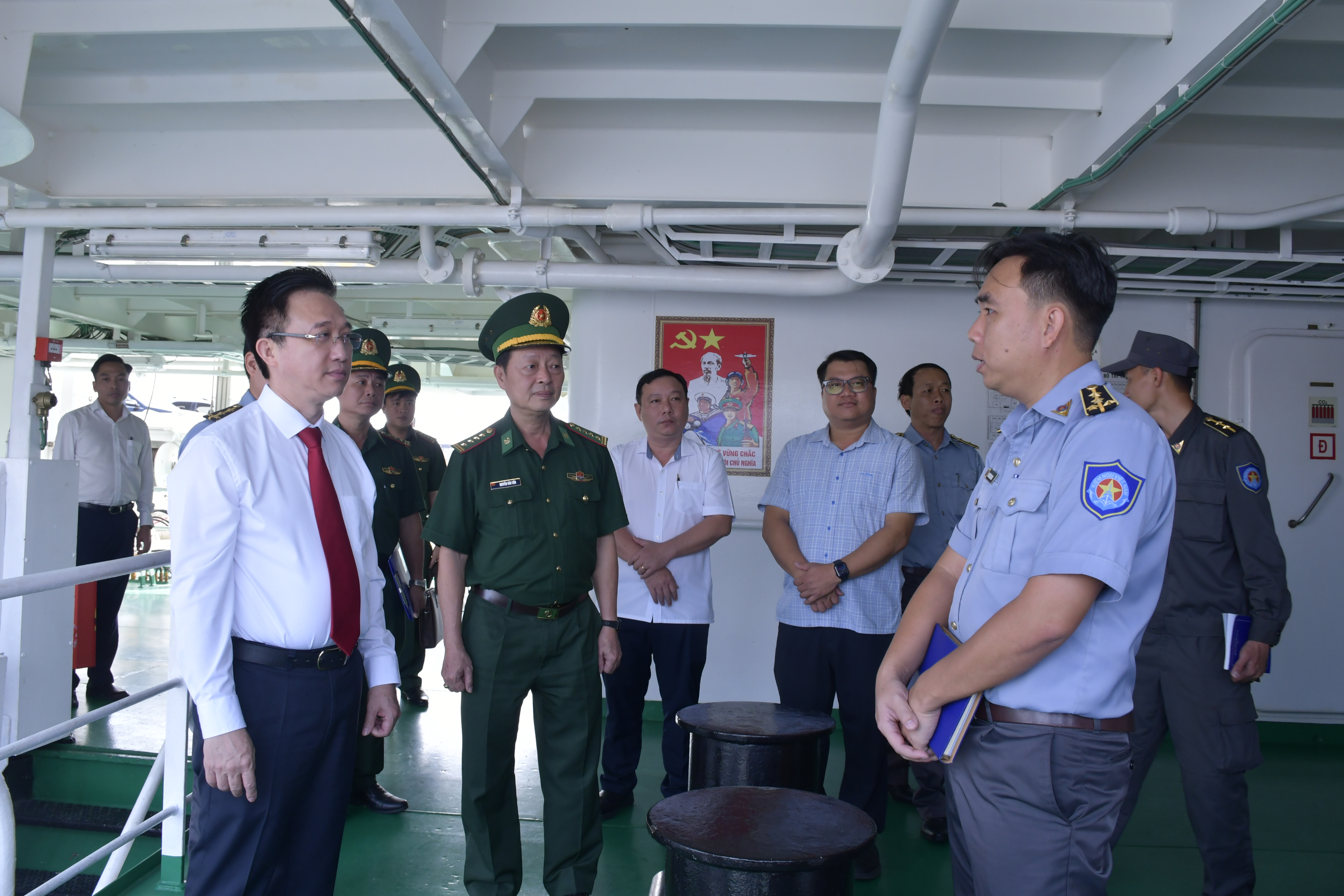 Đồng chí Đặng Minh Thông thăm hỏi đời sống, điều kiện công tác của cán bộ, chiến sĩ; ghi nhận tinh thần trách nhiệm, nỗ lực trong bảo vệ chủ quyền biển đảo, giữ gìn an ninh trật tự; đồng thời động viên các đơn vị tiếp tục đoàn kết, hoàn thành tốt nhiệm vụ trước, trong và sau tết.