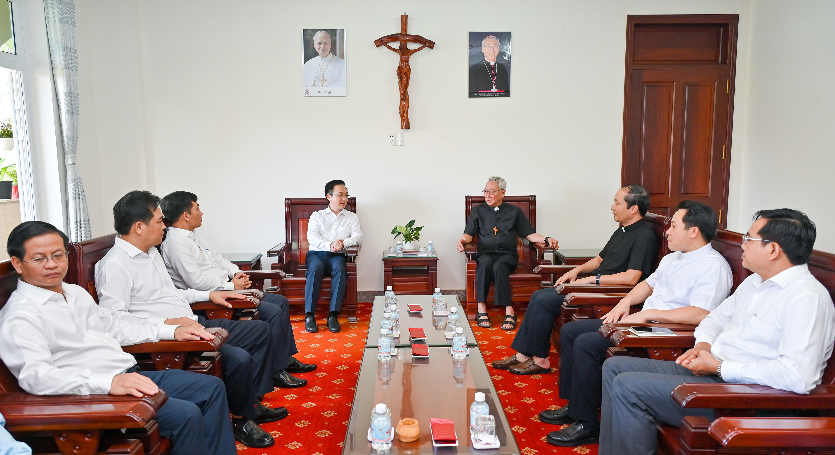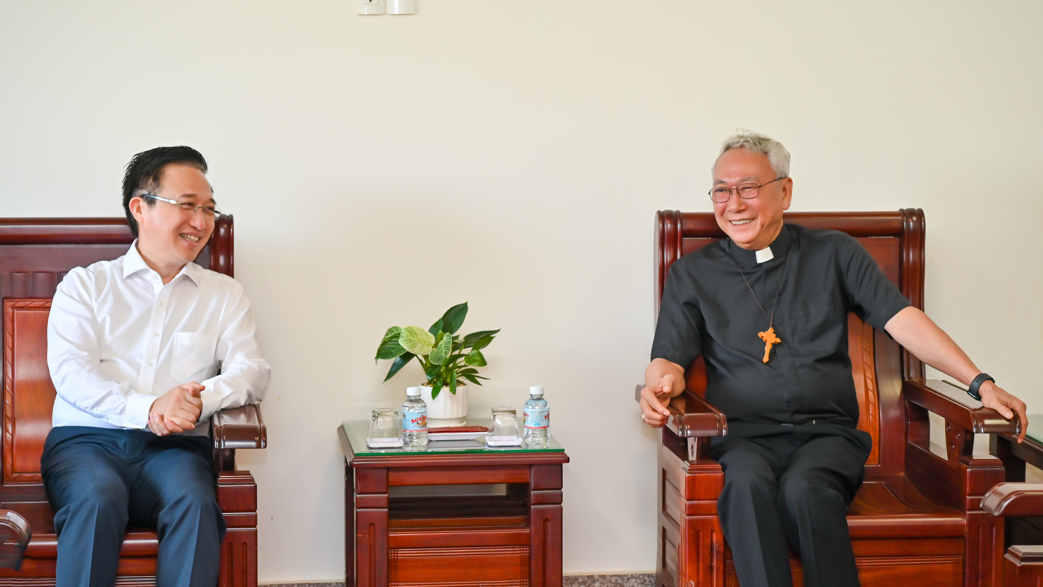 Đồng chí Đặng Minh Thông, Phó Bí thư Thành ủy TPHCM thông tin đến Giám mục Emmanuel Nguyễn Hồng Sơn tại buổi gặp