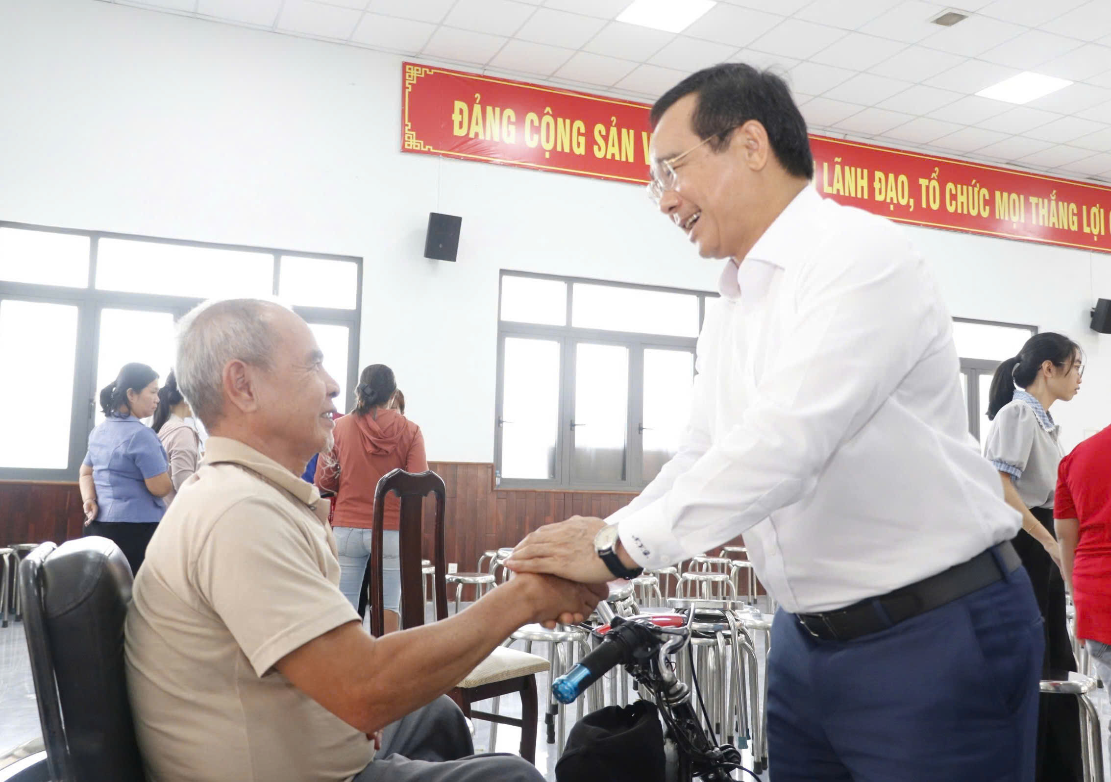 Đồng chí Nguyễn Văn Được trao quà tết đến người dân. Ảnh: NGÔ BÌNH