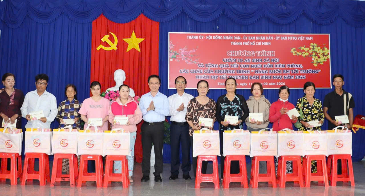Tại xã Lương Thế Trân, lãnh đạo TPHCM trao 80 phần quà cho gia đình chính sách, có hoàn cảnh khó khăn trên địa bàn; 20 phần quà cho cán bộ, chiến sĩ (mỗi phần quà trị giá 1,5 triệu đồng, gồm: 1,2 triệu đồng tiền mặt và quà trị giá 300 ngàn đồng). Đồng thời, trao 25 phần quà cho con nuôi đồn biên phòng, các em trong chương trình “Nâng bước em tới trường” (mỗi phần quà trị giá 2 triệu đồng gồm: 1,7 triệu đồng tiền mặt và quà trị giá 300 ngàn đồng).