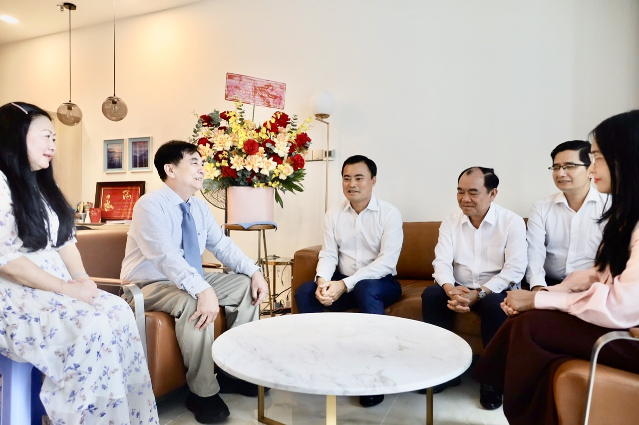 Đồng chí Bùi Xuân Cường thăm hỏi gia đình Thầy thuốc Nhân dân, GS-TS-BS Ngô Minh Xuân. Ảnh: QUỐC HÙNG