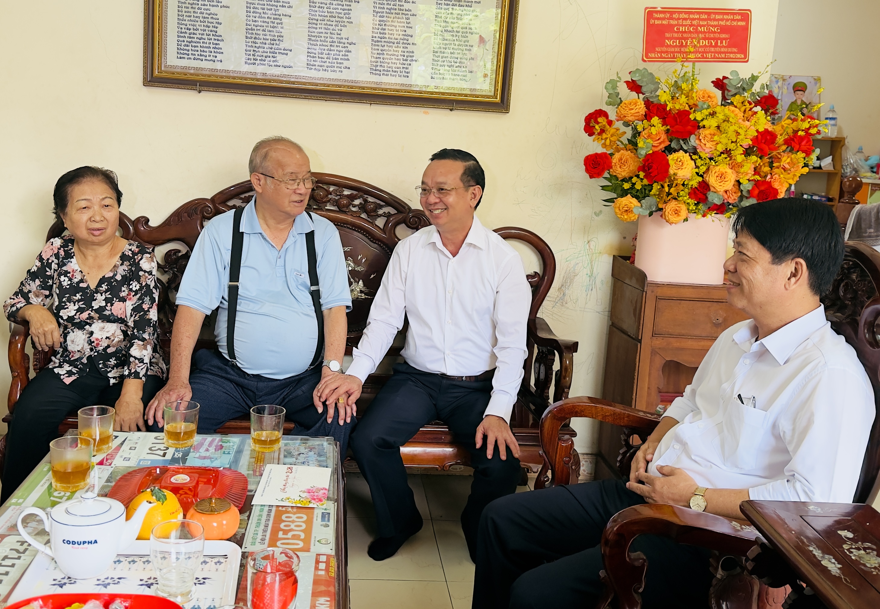 Nhân dịp năm mới, đồng chí Bùi Minh Thạnh ân cần thăm hỏi sức khỏe, chúc BS Tạ Thị Chung luôn mạnh khỏe, trường thọ.