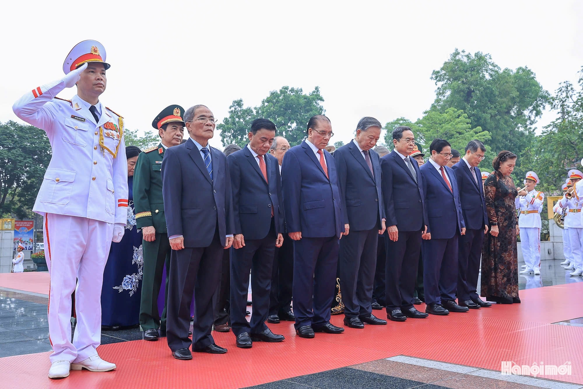 Các đồng chí lãnh đạo, nguyên lãnh đạo Đảng, Nhà nước tưởng niệm các Anh hùng liệt sĩ. Ảnh: Viết Thành
