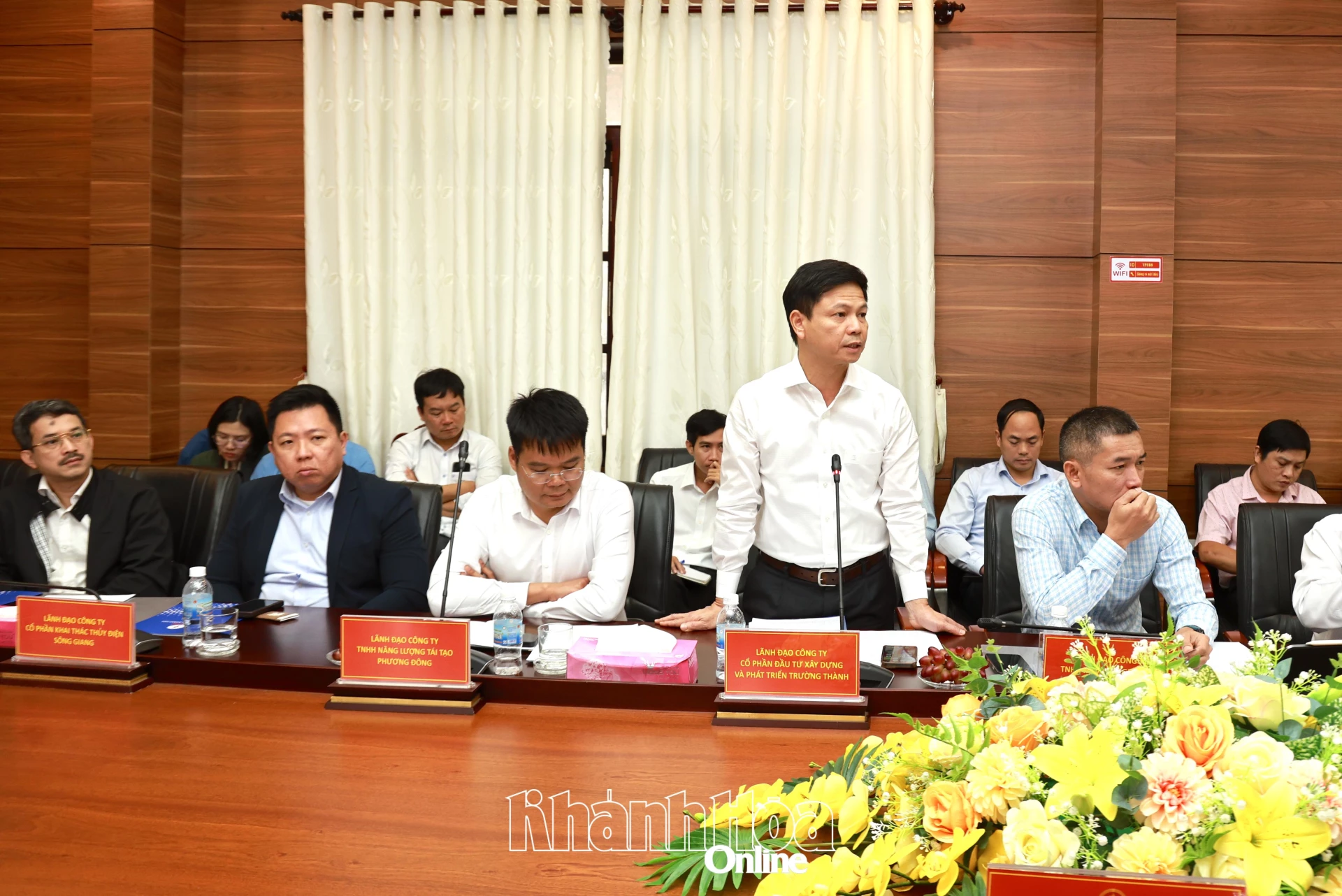 Tại buổi làm việc, đại diện các doanh nghiệp đang đầu tư dự án điện trên địa bàn tỉnh phản ánh một số khó khăn trong thi công và xin gia hạn thời gian đi vào vận hành; đề xuất hướng dẫn vấn đề đấu giá, đấu thầu, đàm phán giá điện...
