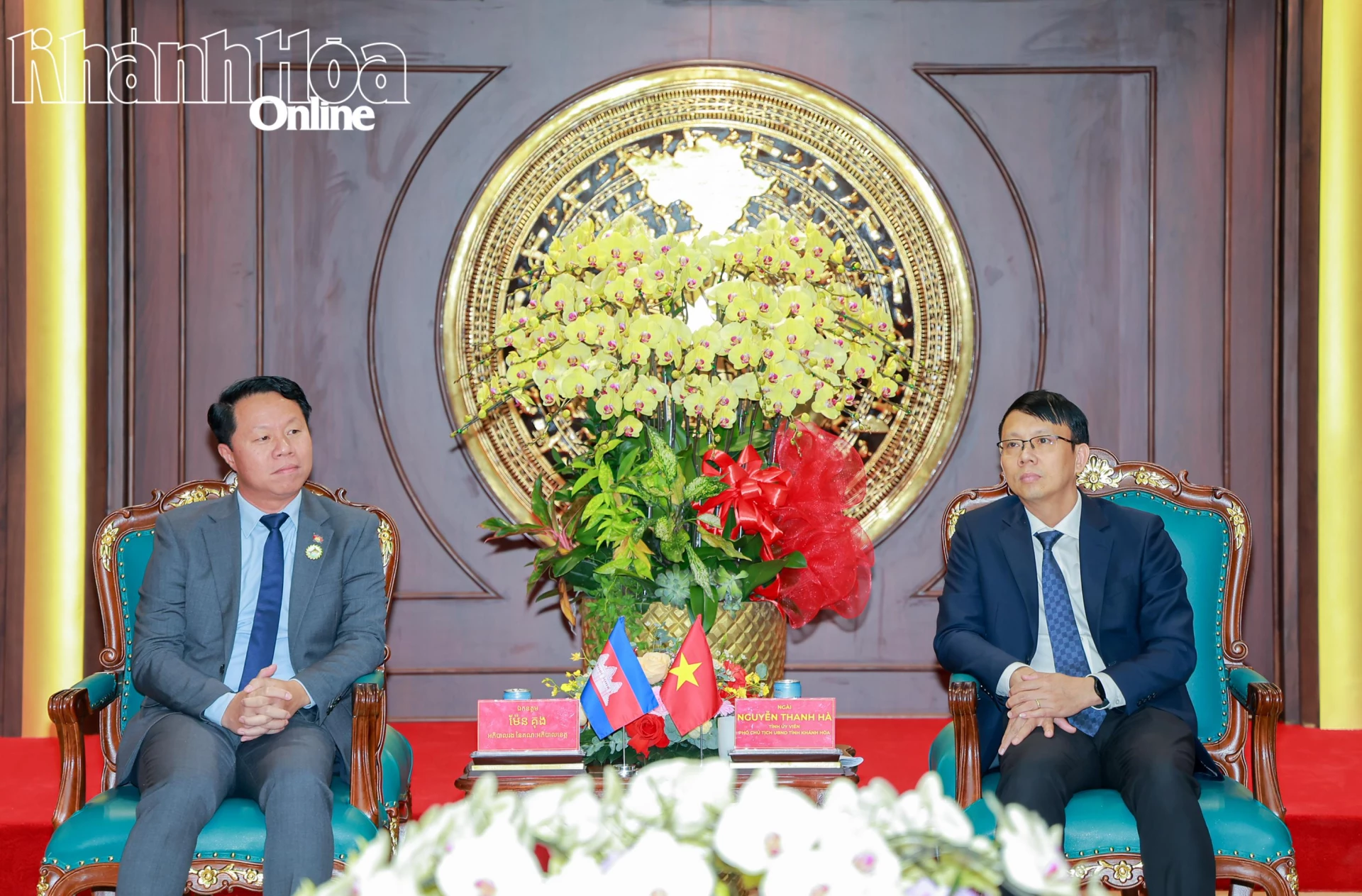 Tại buổi tiếp, đồng chí Nguyễn Thanh Hà đã chuyển lời chúc sức khỏe, hạnh phúc của các đồng chí: Nghiêm Xuân Thành - Ủy viên Trung ương Đảng, Bí thư Tỉnh ủy; Trần Phong - Ủy viên Trung ương Đảng, Phó Bí thư Tỉnh ủy, Chủ tịch UBND tỉnh đến các thành viên đoàn công tác; đồng thời gửi đến ông Sor Soputra - Ủy viên Trung ương Đảng Nhân dân Campuchia, Chủ tịch Đảng Nhân dân Campuchia tỉnh Stung Treng kiêm Tỉnh trưởng tỉnh Stung Treng, cùng Đảng bộ, chính quyền và Nhân dân tỉnh Stung Treng những lời chúc tốt đẹp nhất.