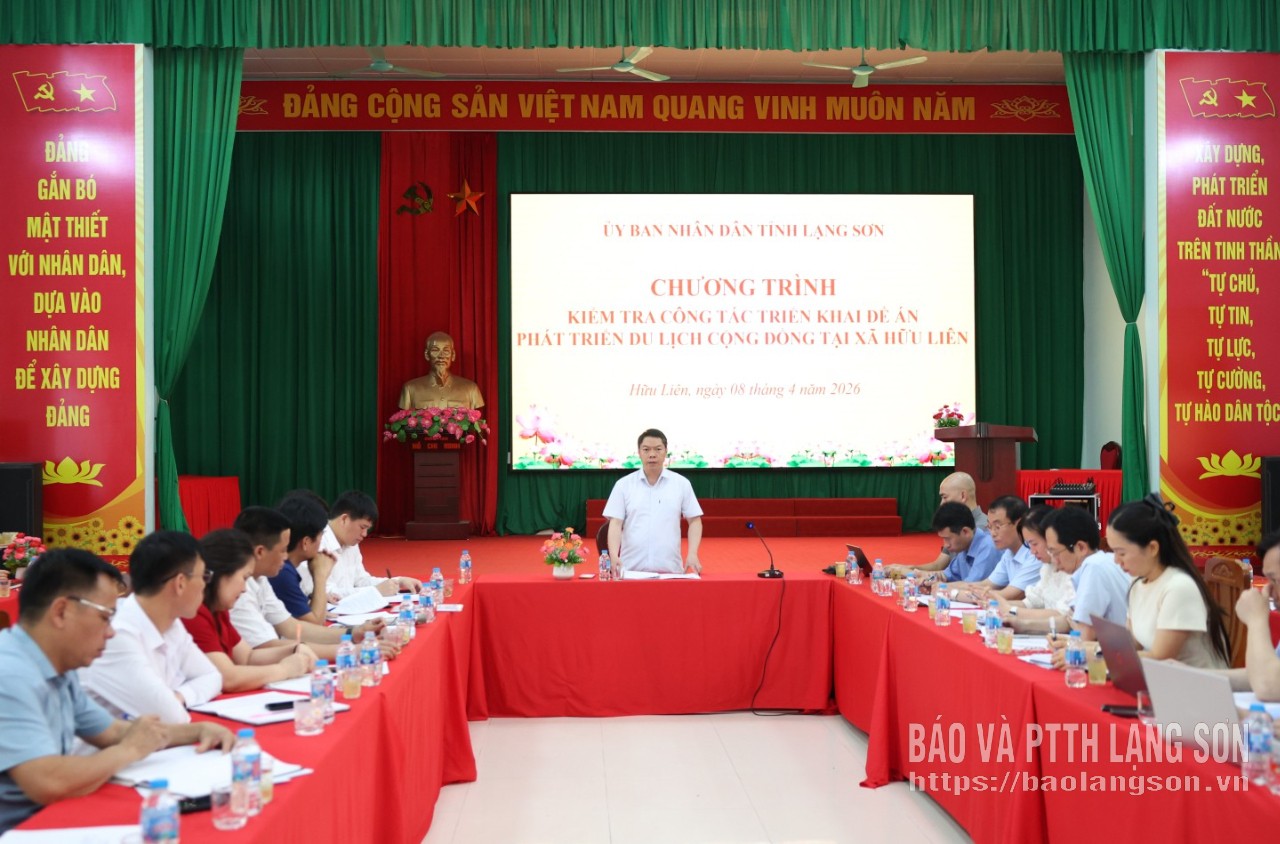 Theo báo cáo tại buổi kiểm tra, ngay sau khi Quyết định số 427 ngày 12/3/2026 của UBND tỉnh về việc phê duyệt Đề án phát triển Làng du lịch cộng đồng Quỳnh Sơn và Hữu Liên được ban hành, UBND xã Hữu Liên đã thành lập Ban Chỉ đạo thực hiện Đề án phát triển Làng du lịch cộng đồng Hữu Liên, giai đoạn 2026 – 2027 và ban hành kế hoạch triển khai đề án.