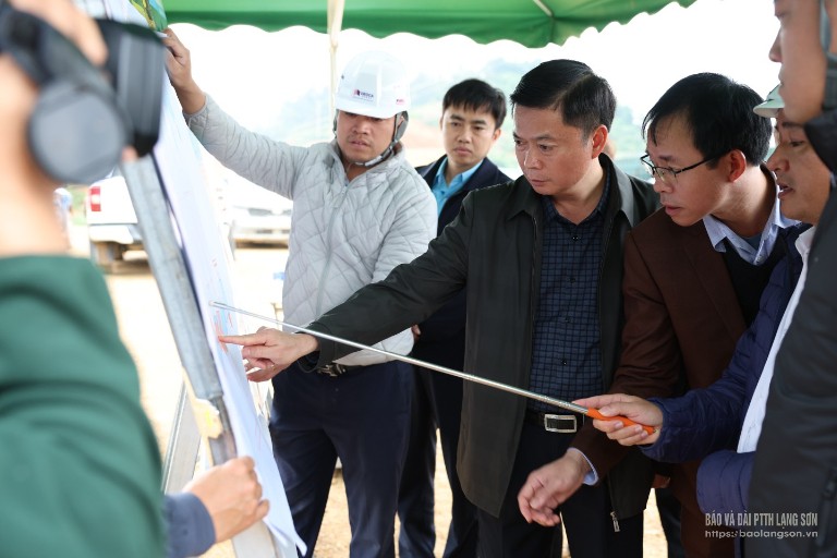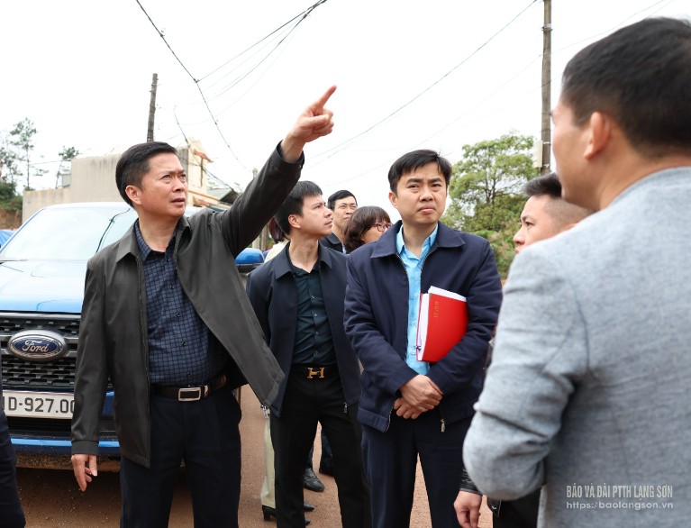 Đồng chí Phó Chủ tịch Thường trực UBND tỉnh nắm bắt tiến độ thi công và giải phóng mặt bằng dự án trên địa bàn xã Đồng Đăng