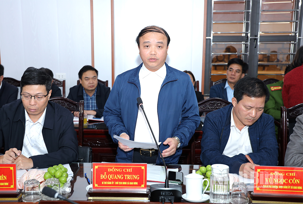 Lãnh đạo xã Giao Hưng phát biểu tại hội nghị.