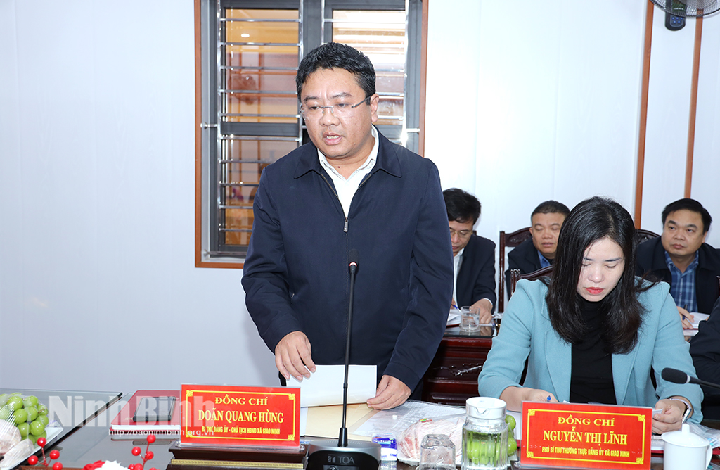 Lãnh đạo xã Giao Ninh phát biểu tại hội nghị.