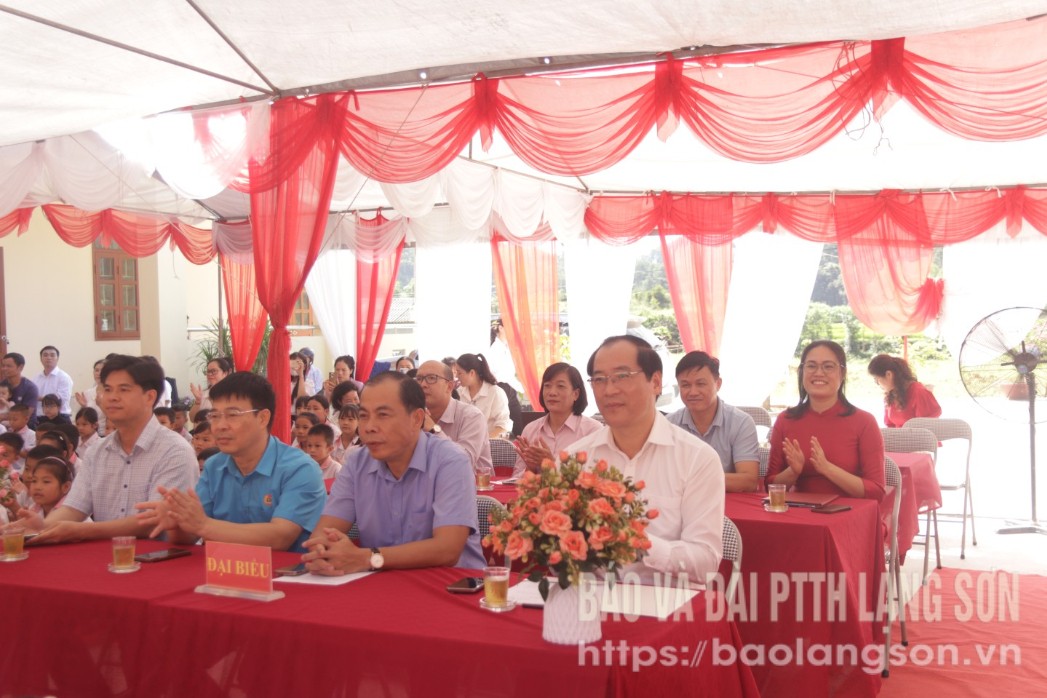 Các đại biểu tham dự buổi tặng quà tại Trường Tiểu học Thạch Đạn, xã Cao Lộc