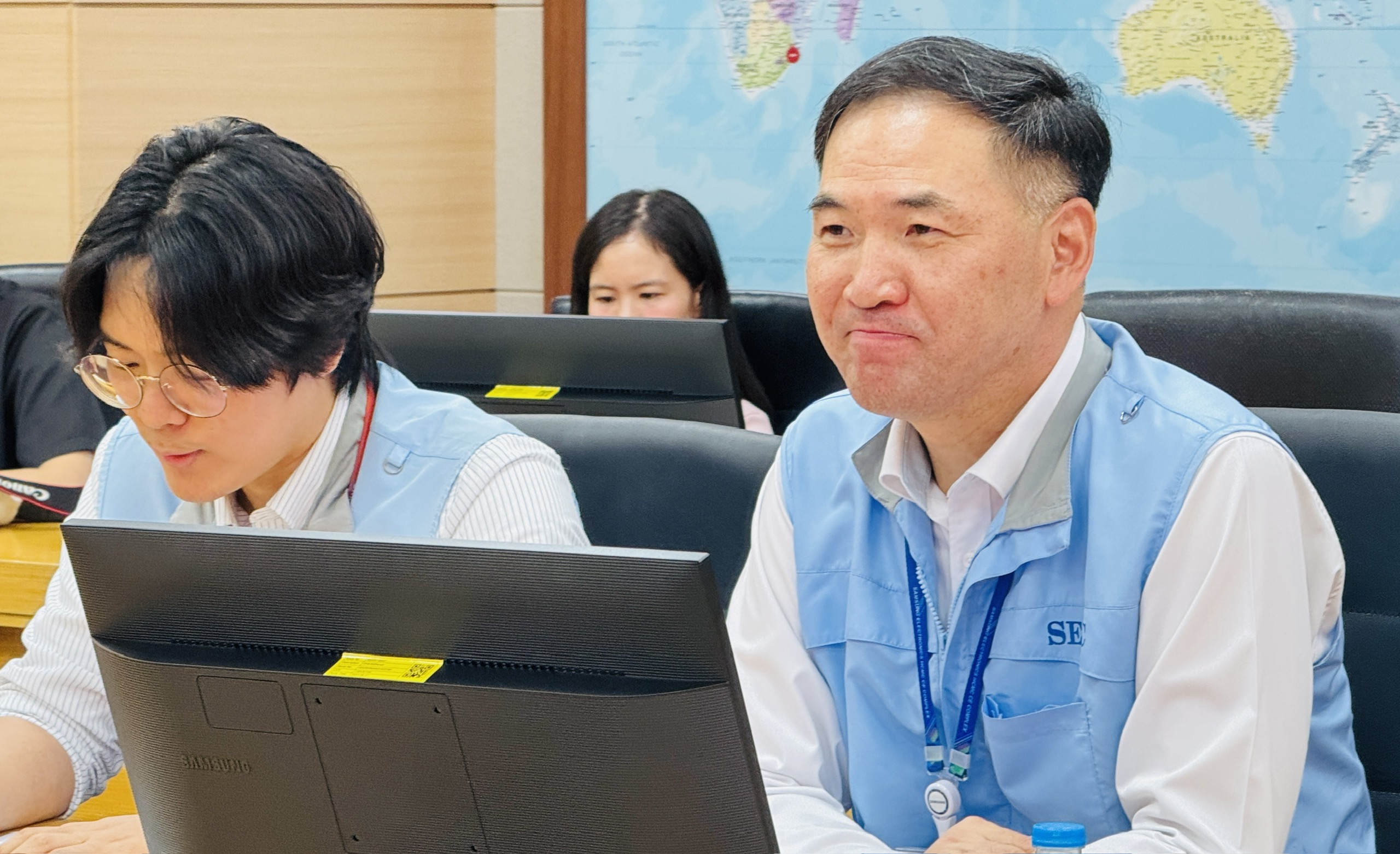 Ông Hwang Keun Ha, Tổng Giám đốc SEHC báo cáo với đoàn công tác tại cuộc gặp. Ảnh: ĐÌNH DƯ