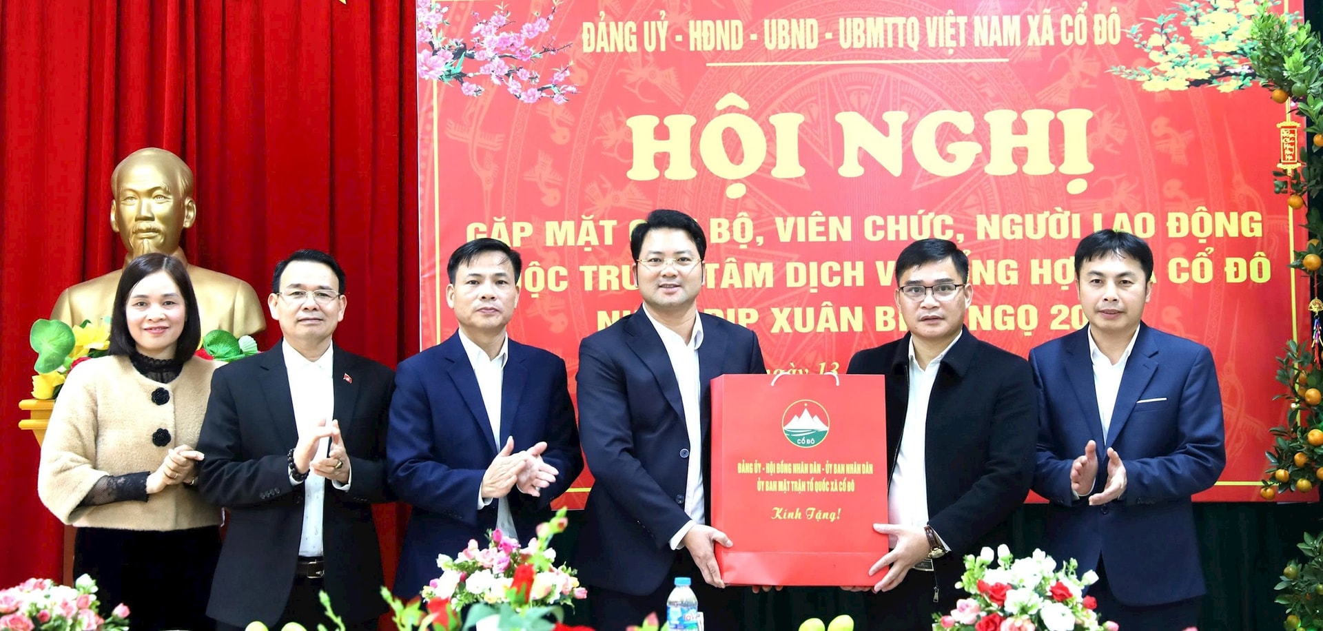 Lãnh đạo xã Cổ Đô thăm, chúc Tết, tặng quà Trung tâm Dịch vụ tổng hợp xã nhân dịp Tết Nguyên đán. Ảnh: Hồng Đạt
