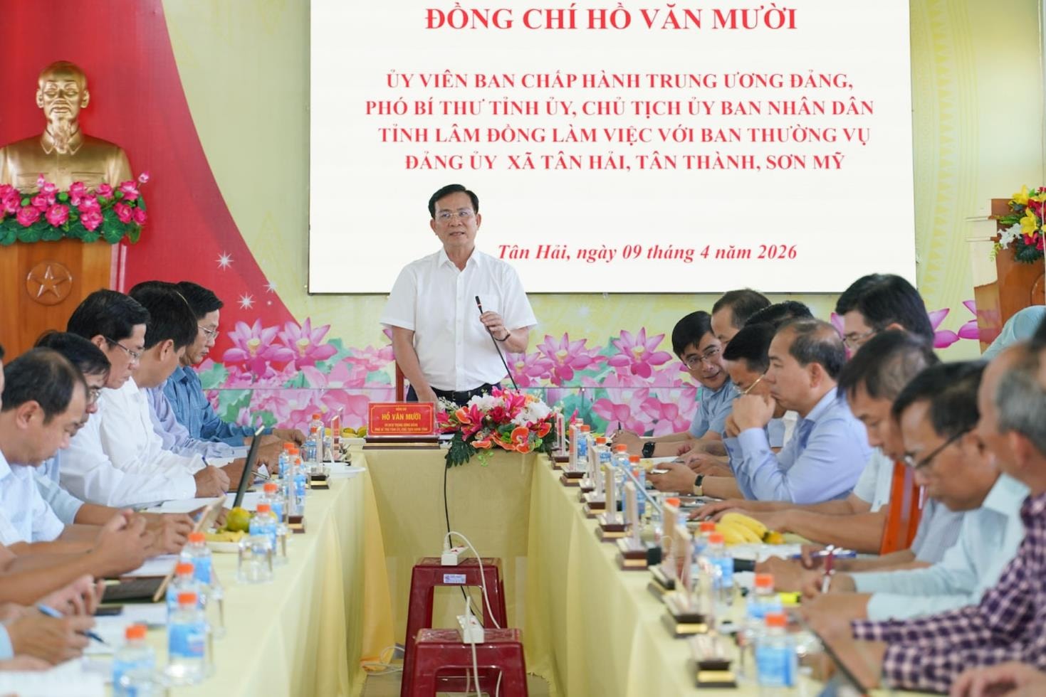 Chiều 9/4, Ủy viên Ban Chấp hành Trung ương Đảng, Phó Bí thư Tỉnh ủy, Chủ tịch UBND tỉnh Lâm Đồng Hồ Văn Mười đã có buổi làm việc với Ban Thường vụ Đảng ủy các xã Tân Hải, Tân Thành, Sơn Mỹ.