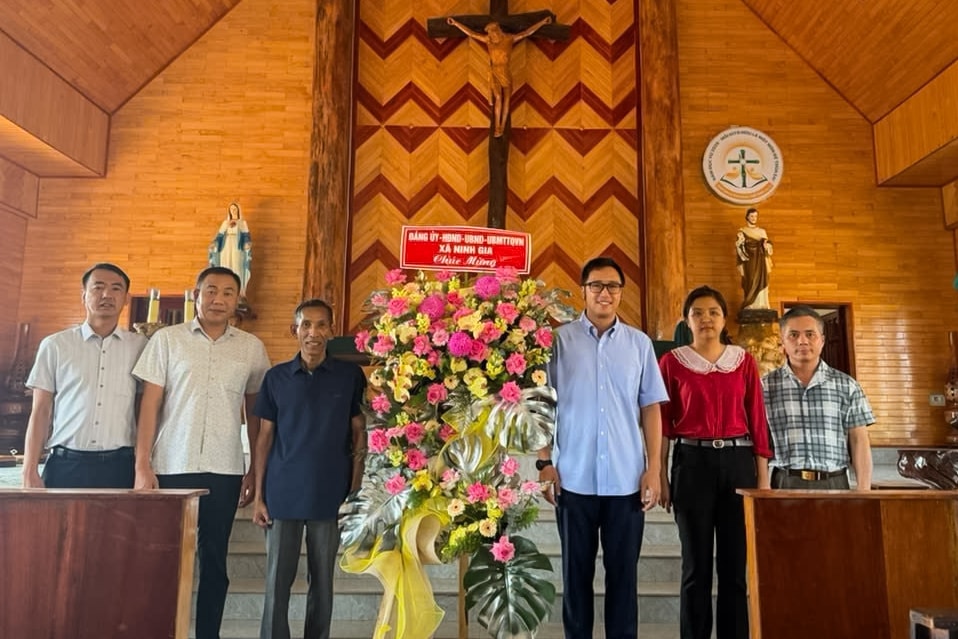 Lãnh đạo xã Ninh Gia thăm, chúc mừng các cơ sở tôn giáo trên địa bàn