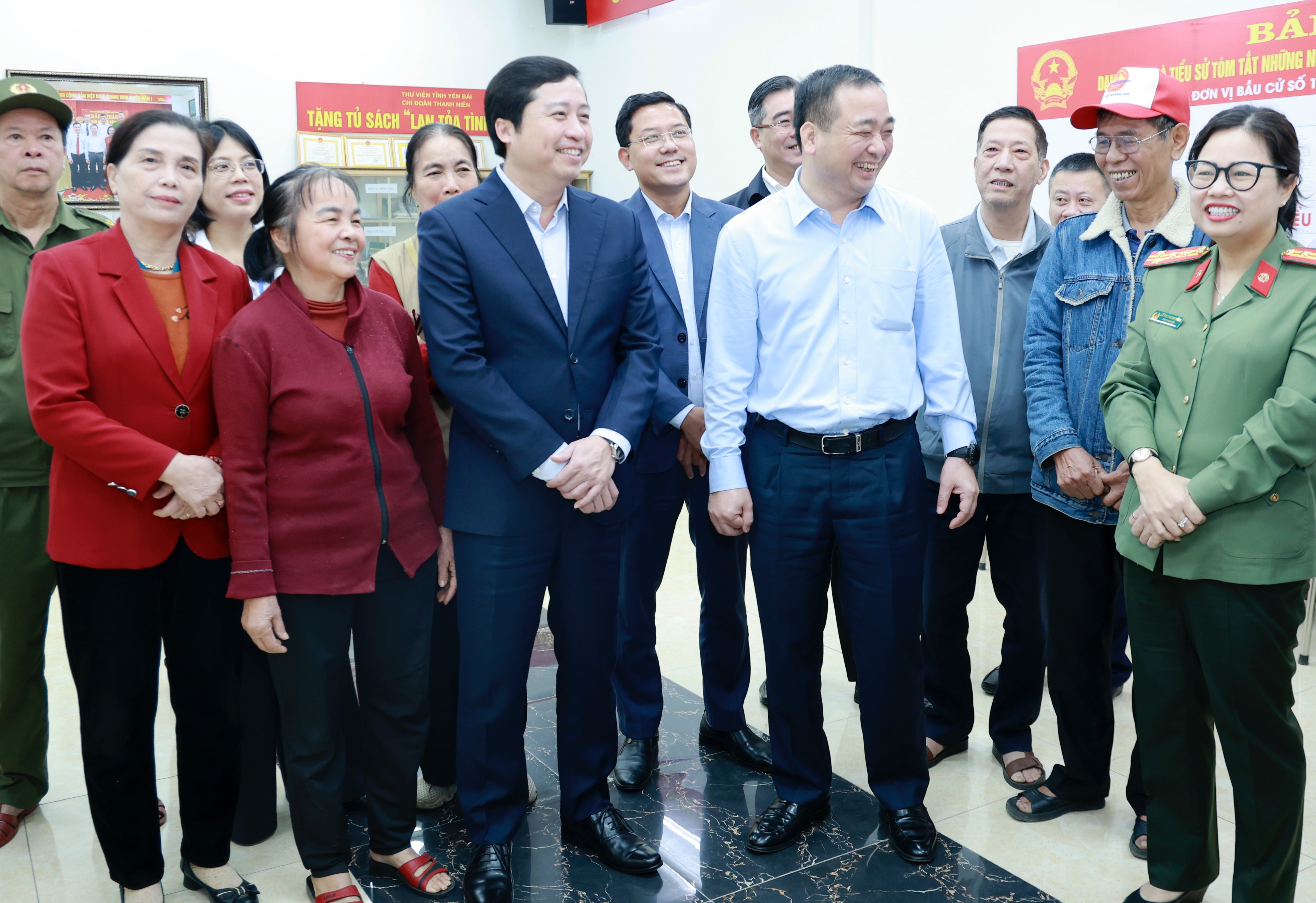 Bí thư tỉnh ủy Dương Quốc Huy và Chủ tịch UBND tỉnh Lào Cai Nguyễn Tuấn Anh trao đổi với cử tri trong buổi làm việc.